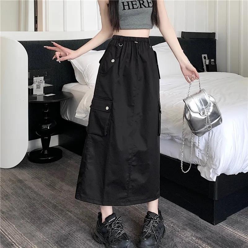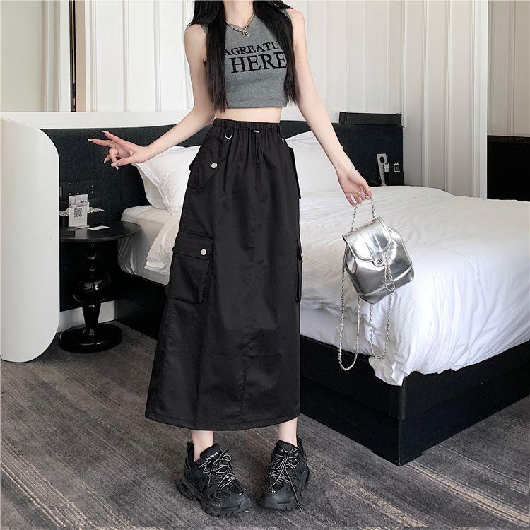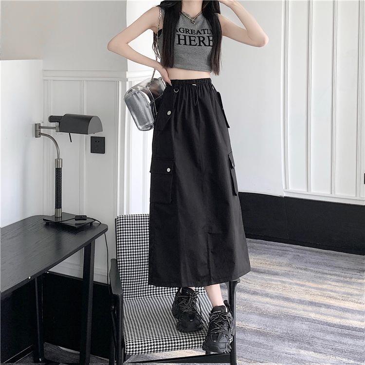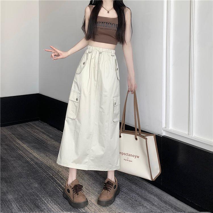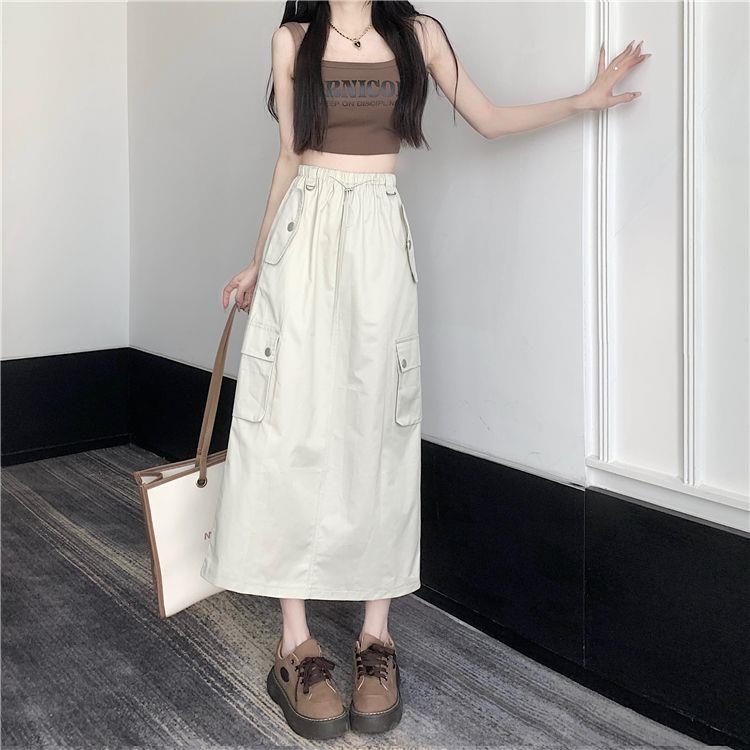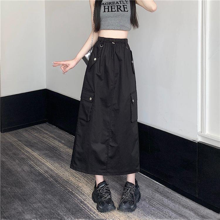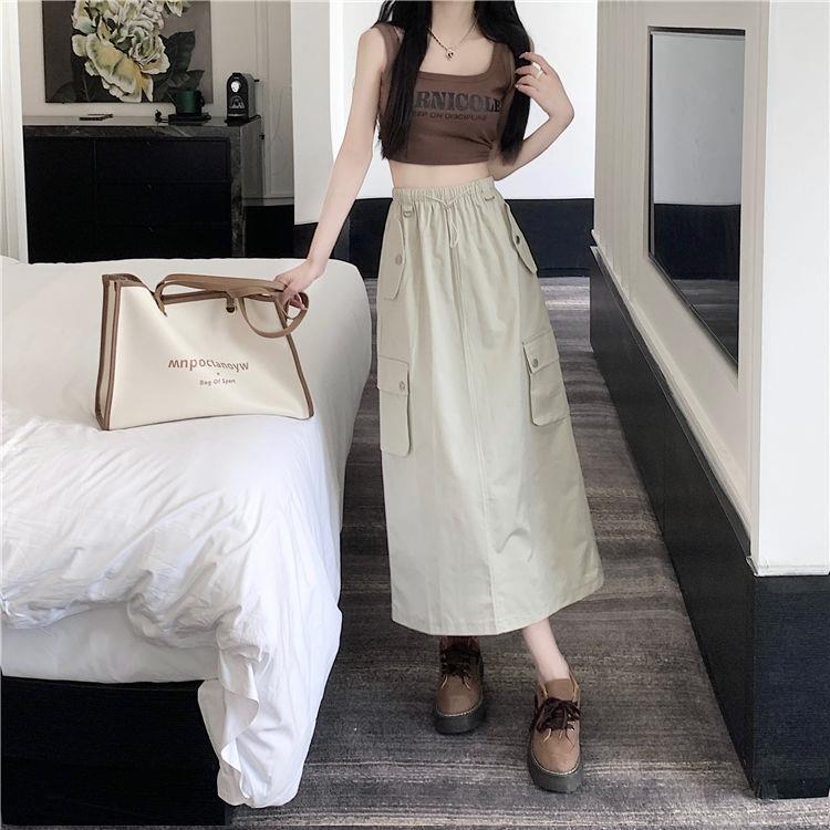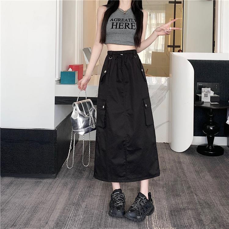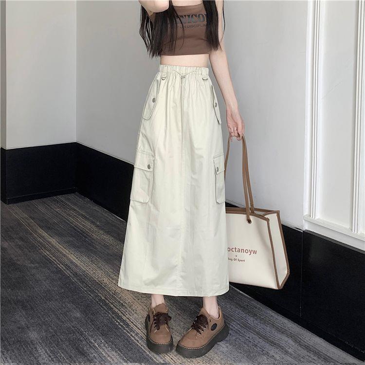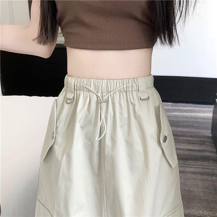 942 여름 새로운 미국 스타일 레트로 스트링 툴링 스커트 분할 높은 허리 느슨한 A-라인 미디 스커트스토어 가기