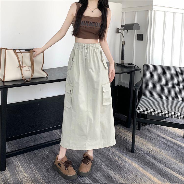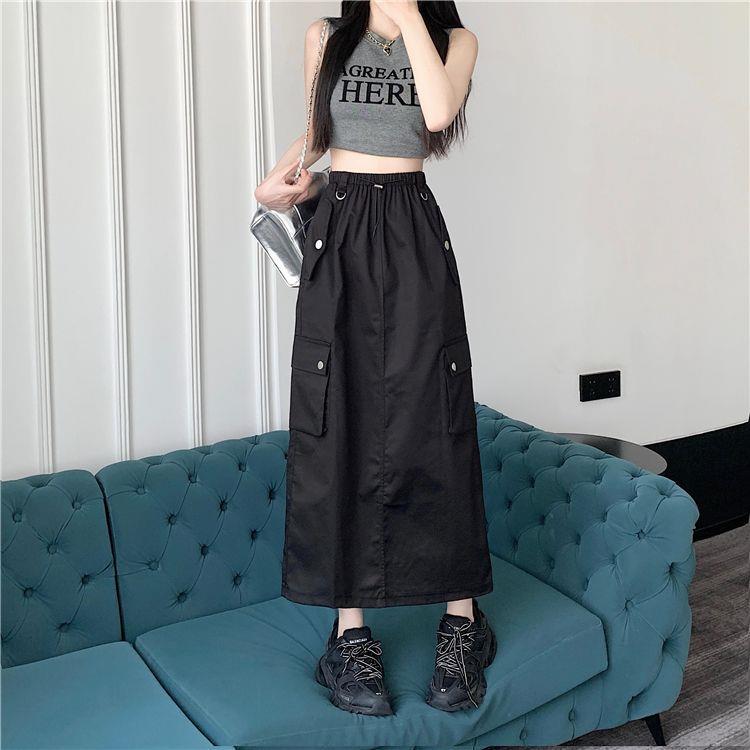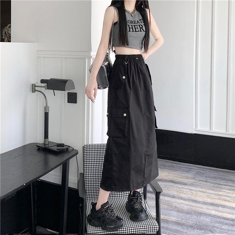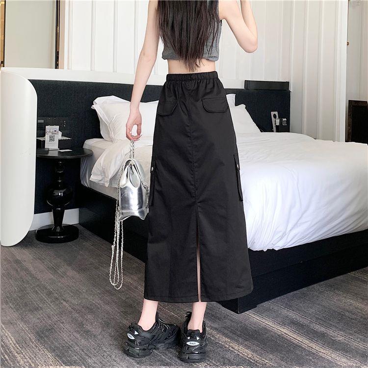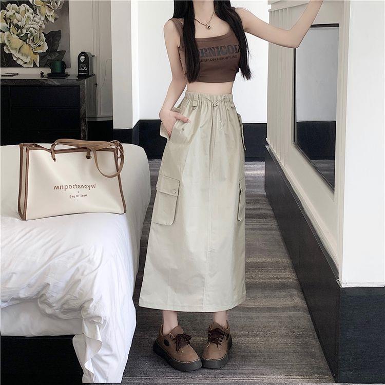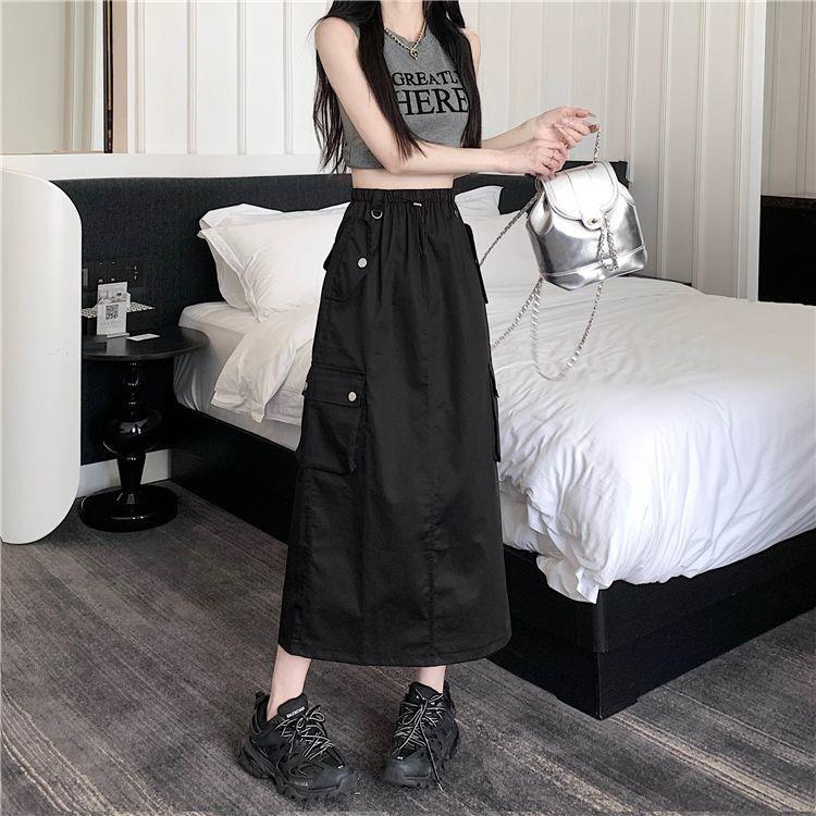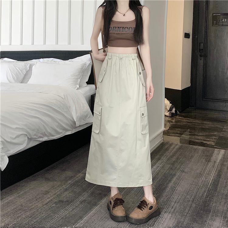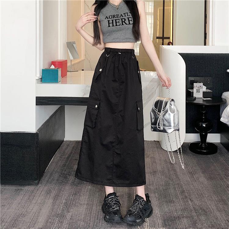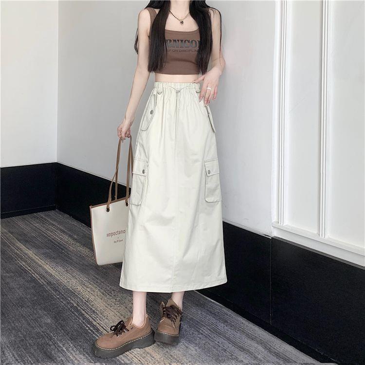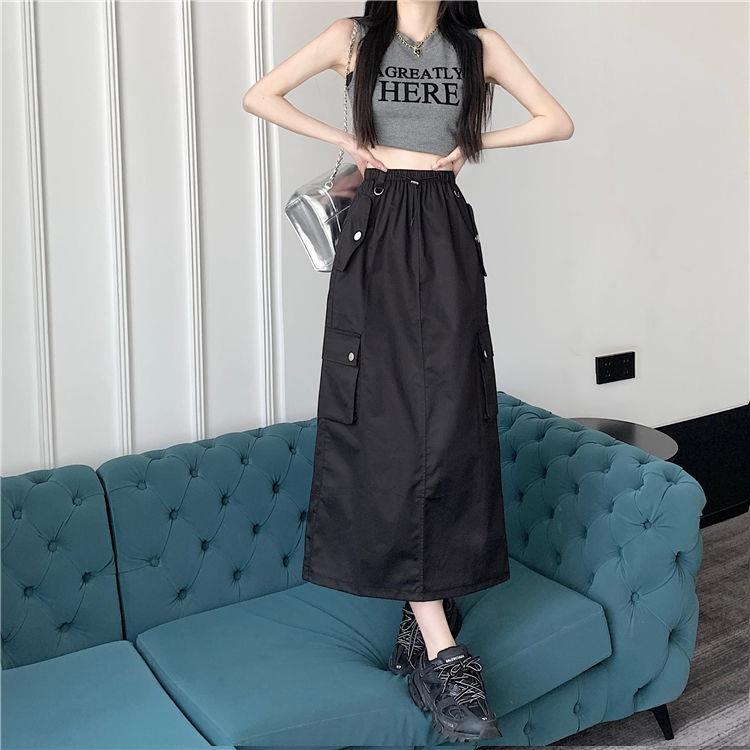 942 여름 새로운 미국 스타일 레트로 스트링 툴링 스커트 분할 높은 허리 느슨한 A-라인 미디 스커트스토어 가기