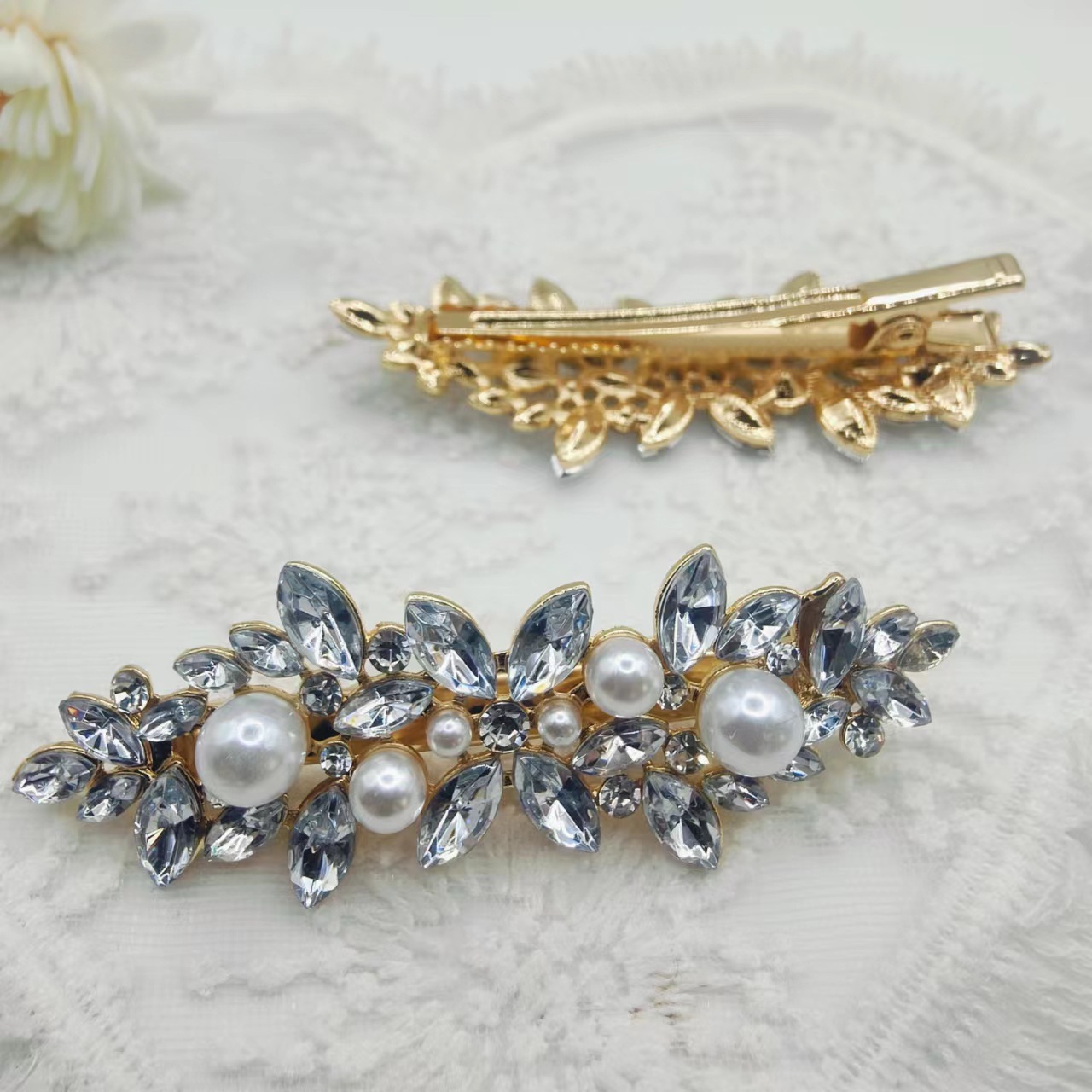 크로스 보더 뉴 우아한 기질 스프링 클립 합금 머리핀 라인 석 머리 뒤 포니테일 클립 머리 장식 도매