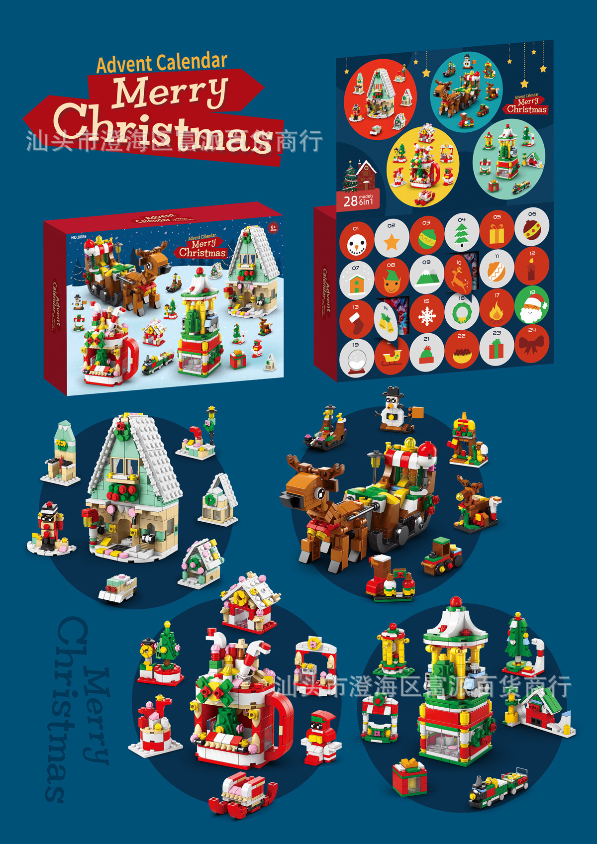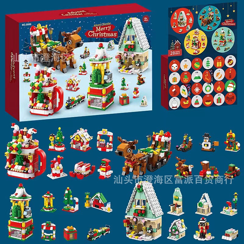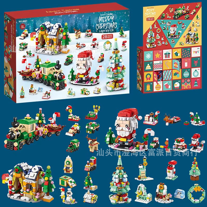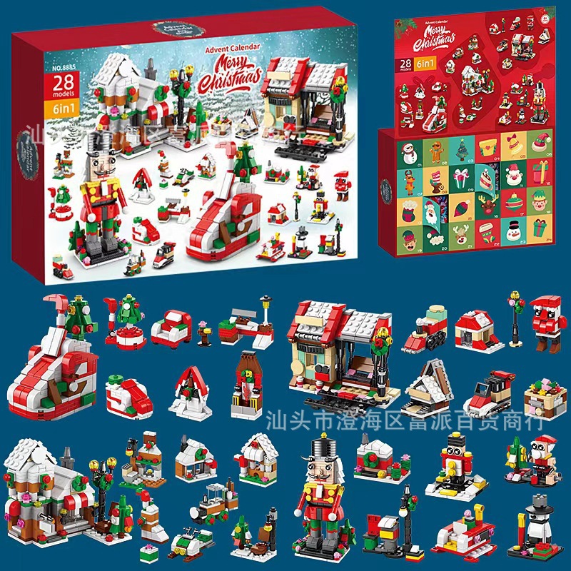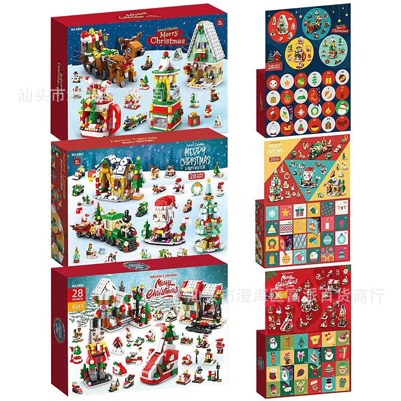 크로스 보더 크리스마스 24 카운트 다운 서프라이즈 블라인드 박스 작은 입자 크리스마스 장면 빌딩 블록 세트 어린이 교육 완구스토어 가기