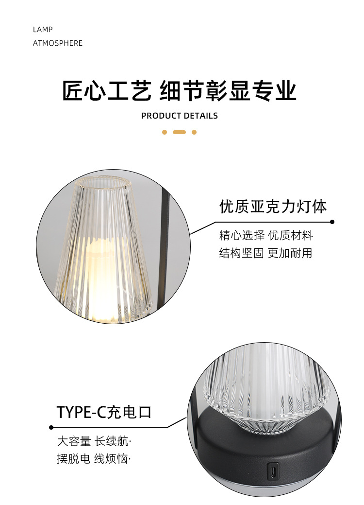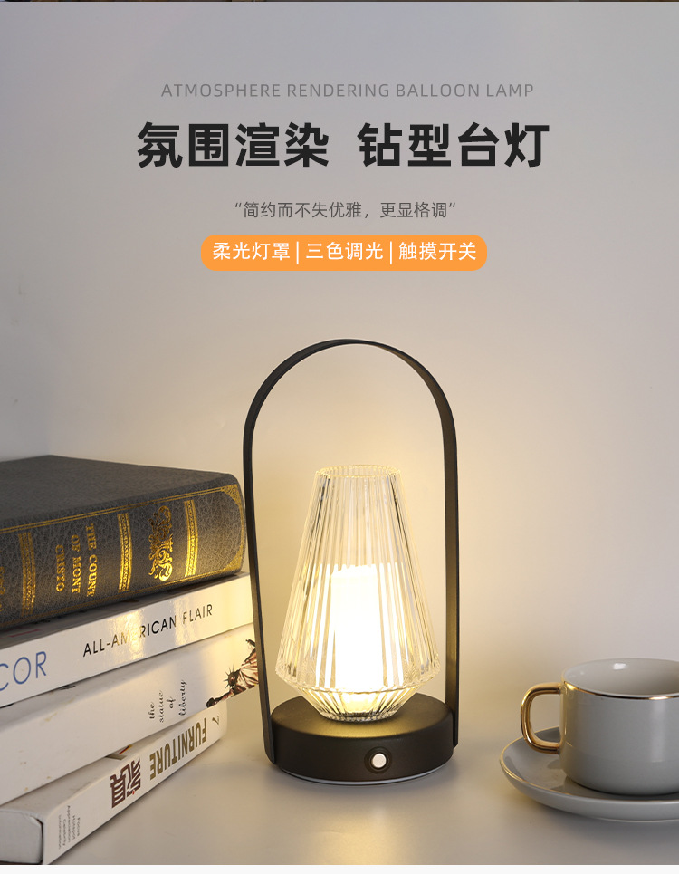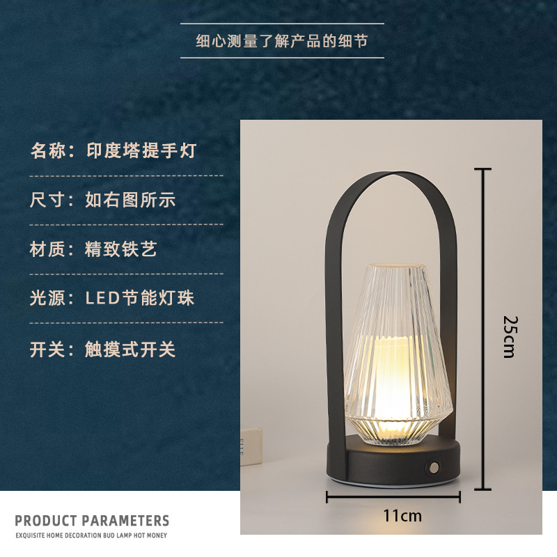 레트로 금속 휴대용 분위기 램프 침실 침대 옆 간단한 창조적 인 테이블 램프 USB 충전식 야외 캠핑 야간 조명
