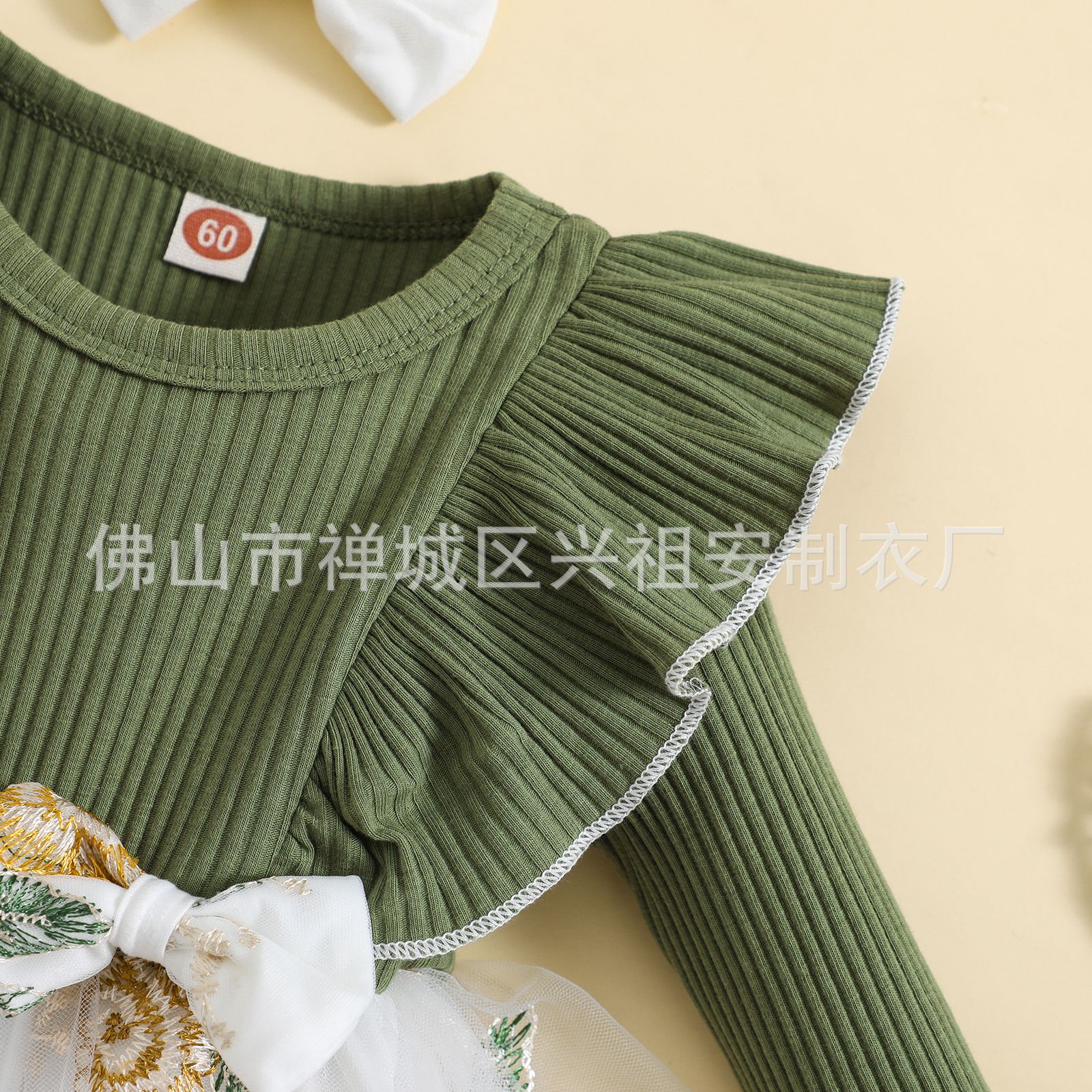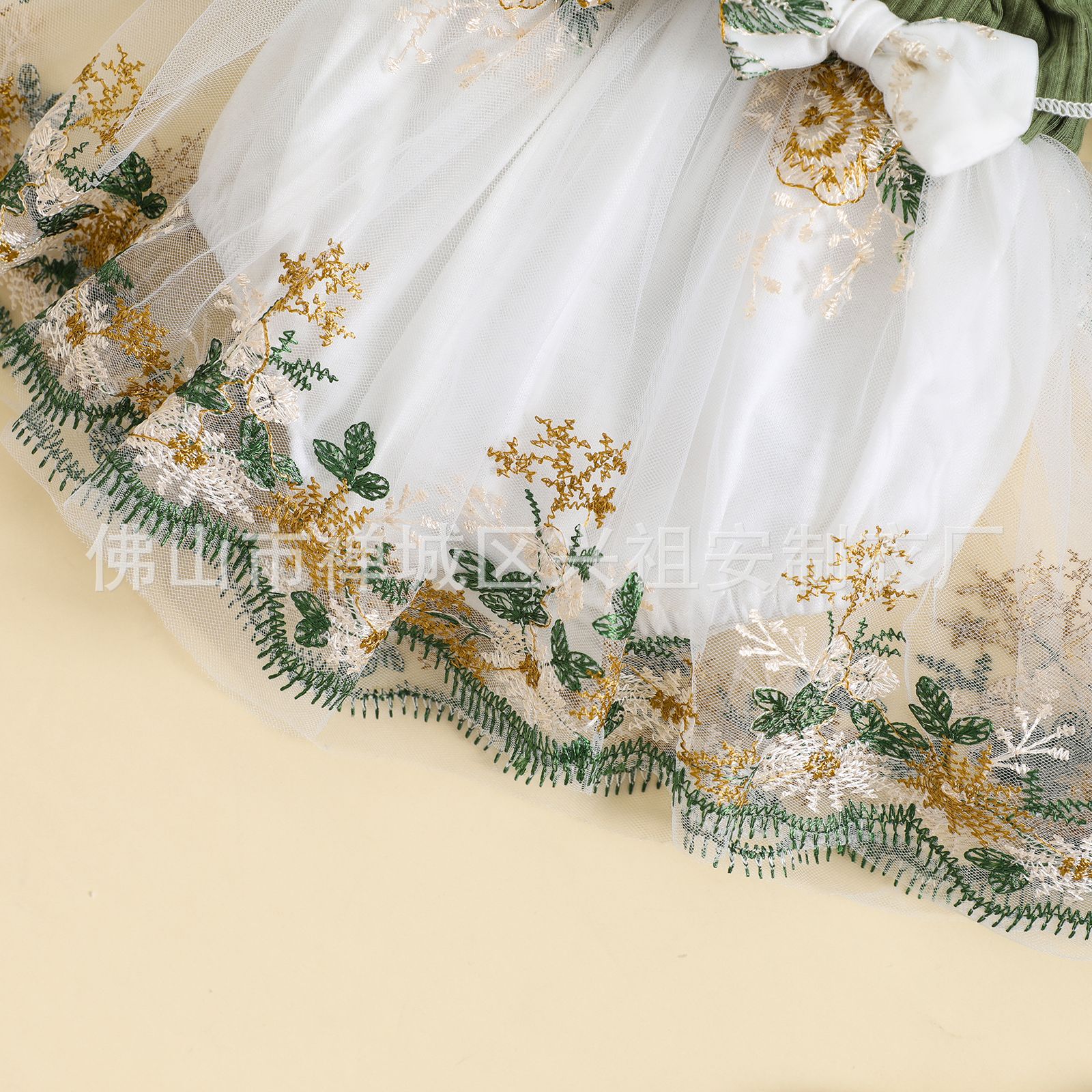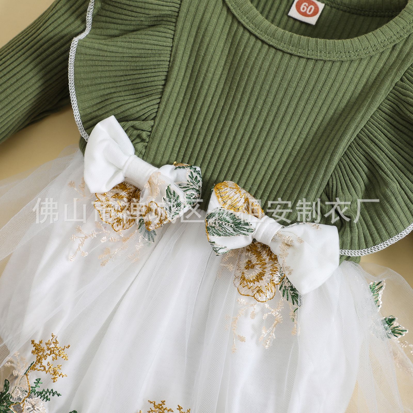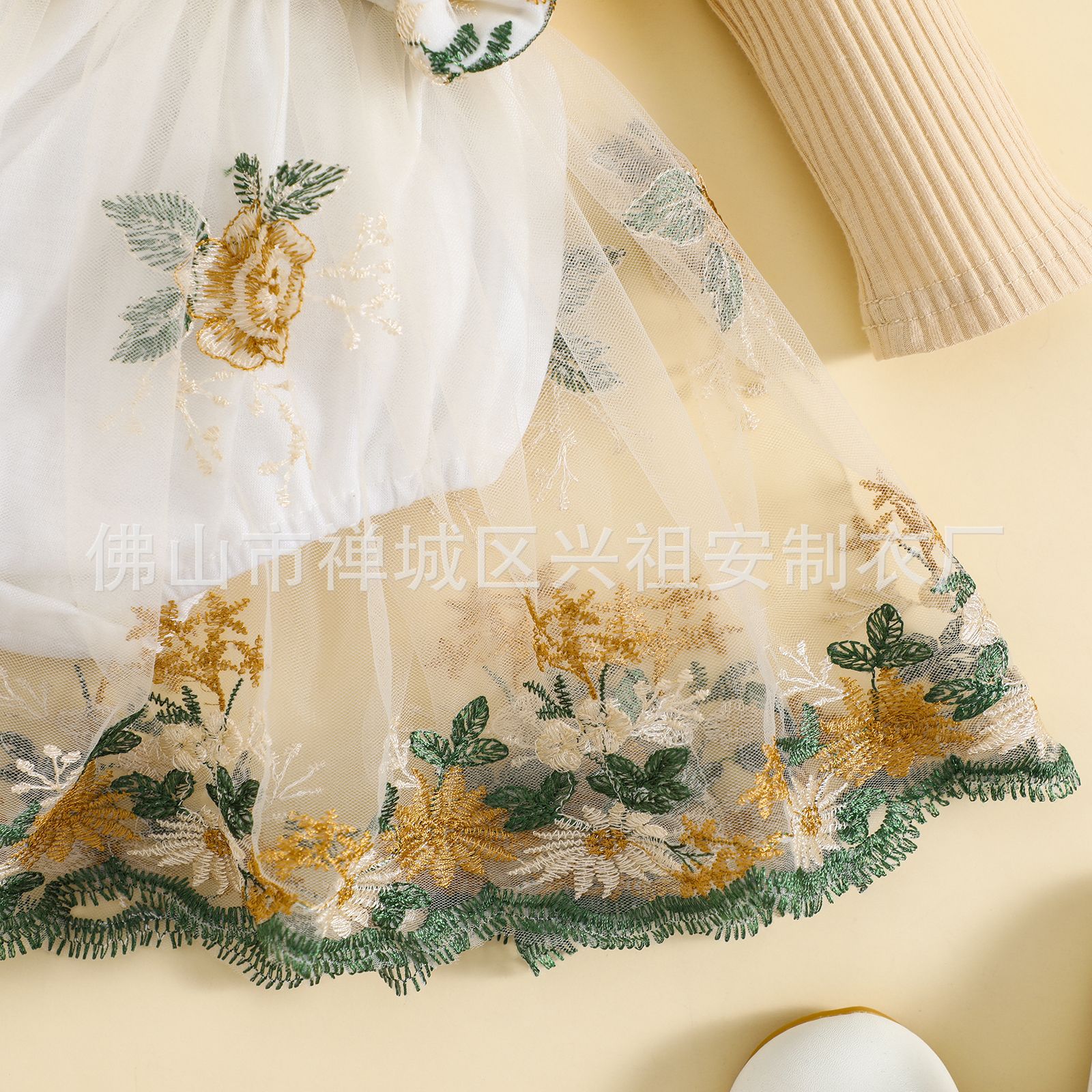 새로운 아기 소녀 봄과 가을 주름 긴 소매 모자이크 꽃 메쉬 패션 원피스스토어 가기