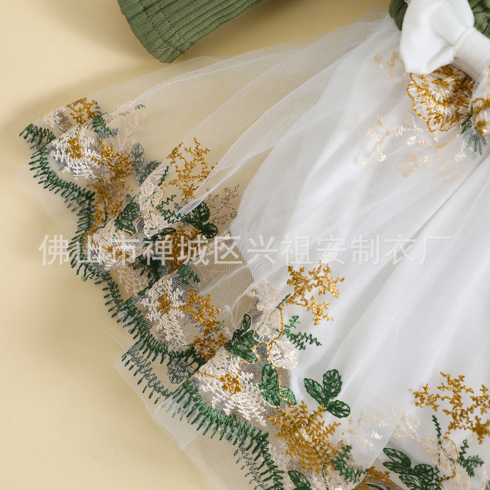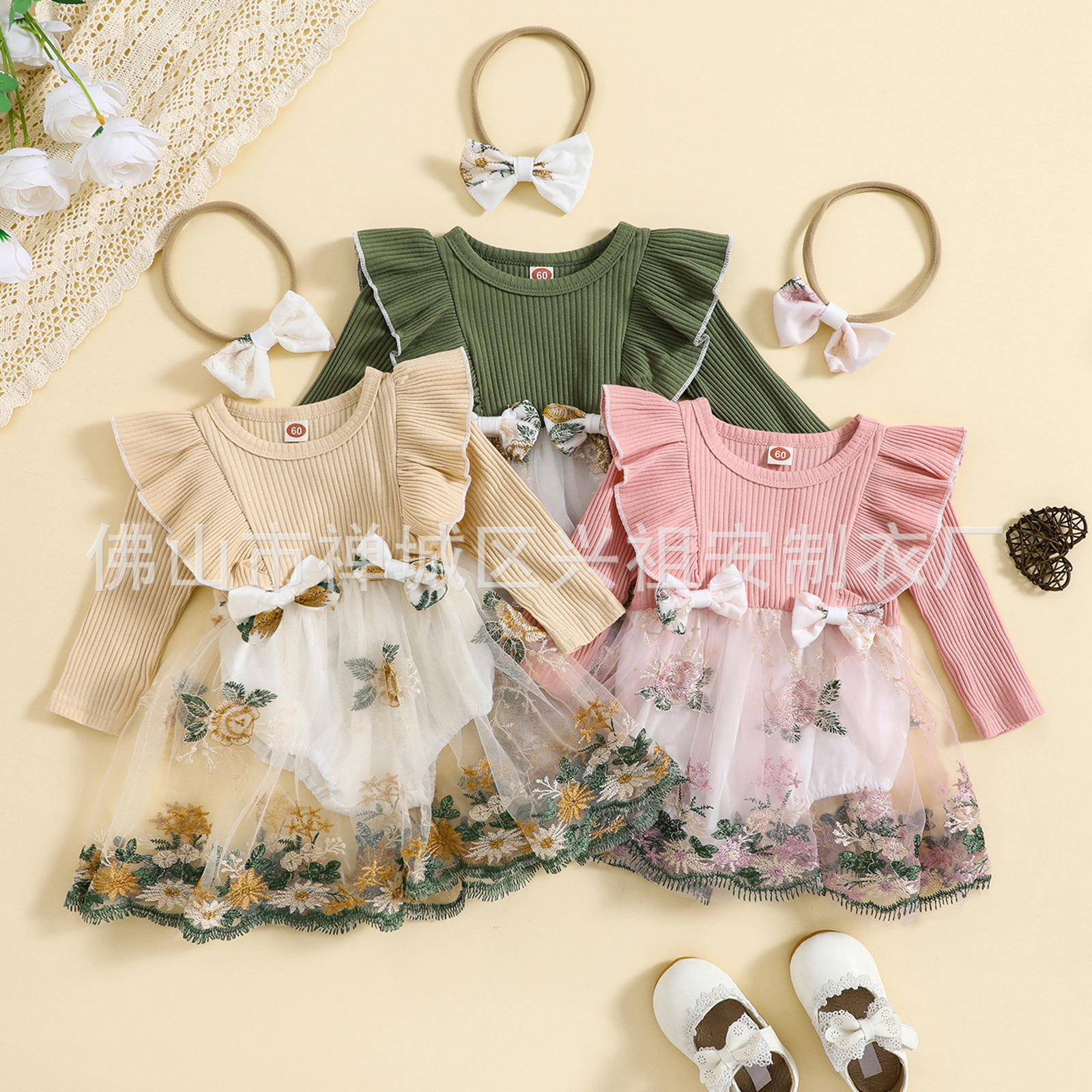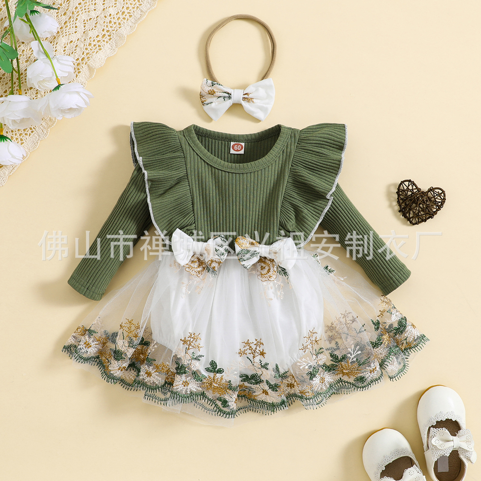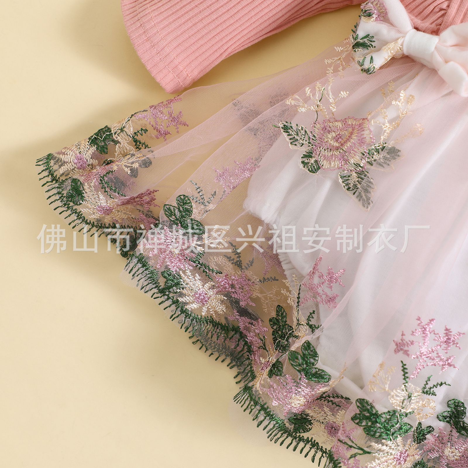 새로운 아기 소녀 봄과 가을 주름 긴 소매 모자이크 꽃 메쉬 패션 원피스스토어 가기
