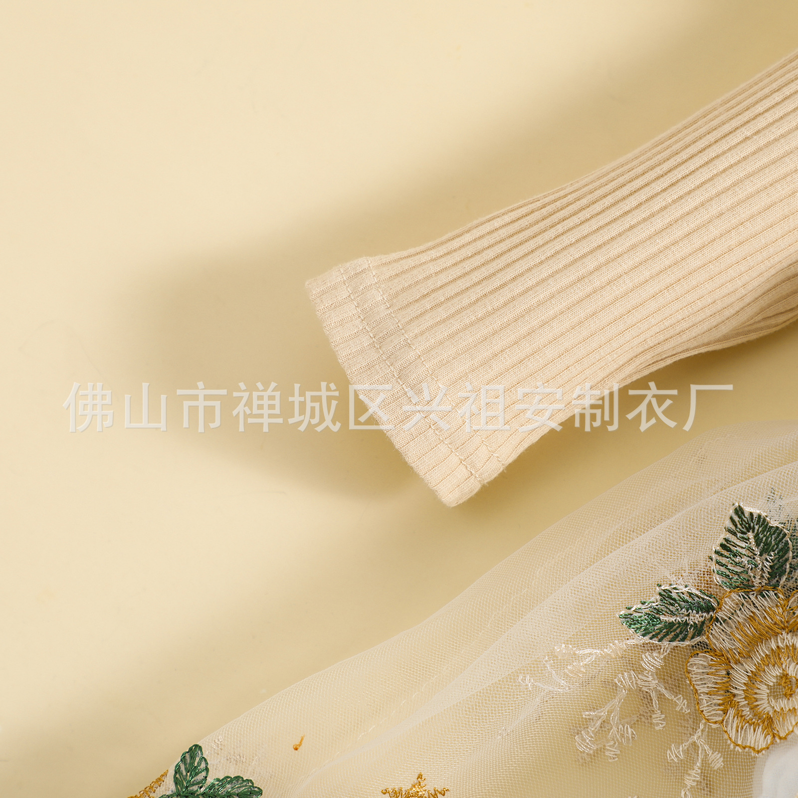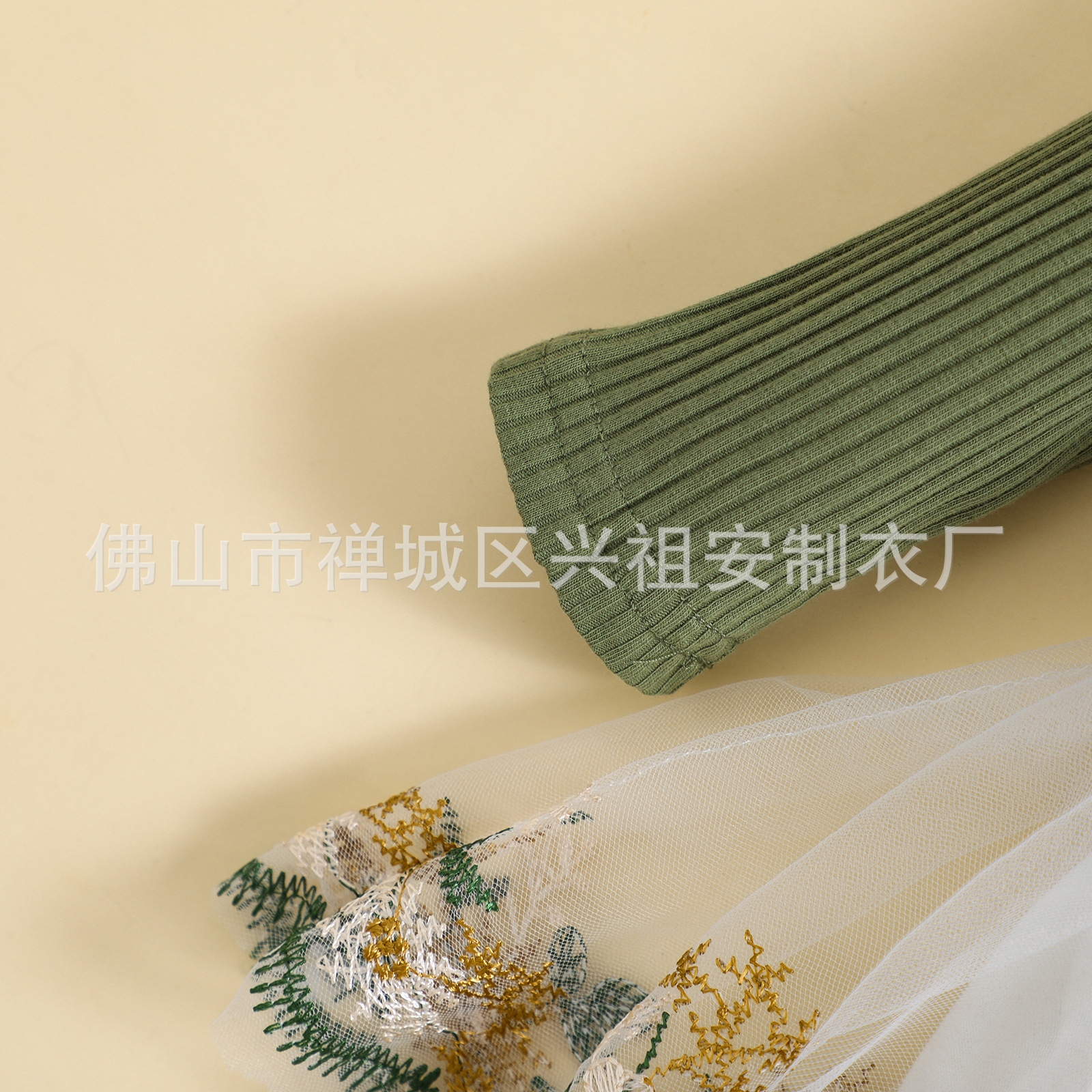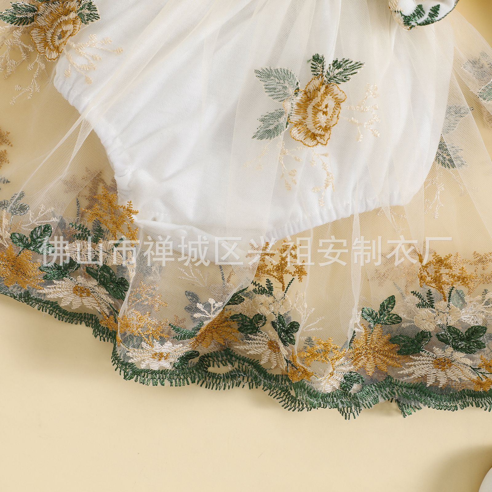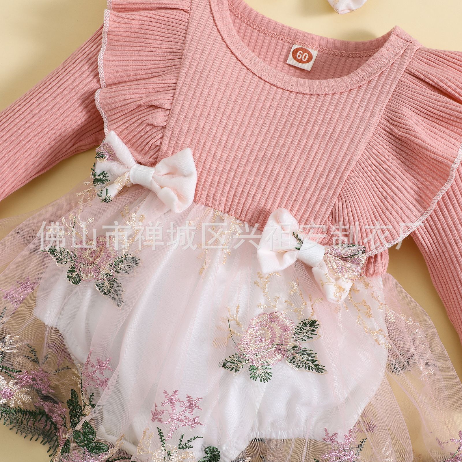 새로운 아기 소녀 봄과 가을 주름 긴 소매 모자이크 꽃 메쉬 패션 원피스스토어 가기