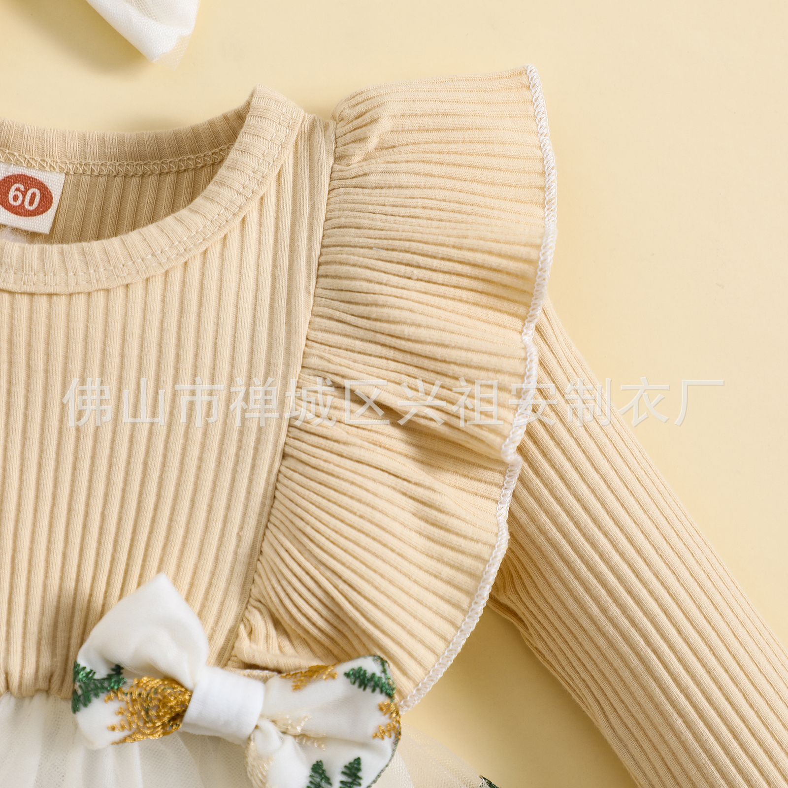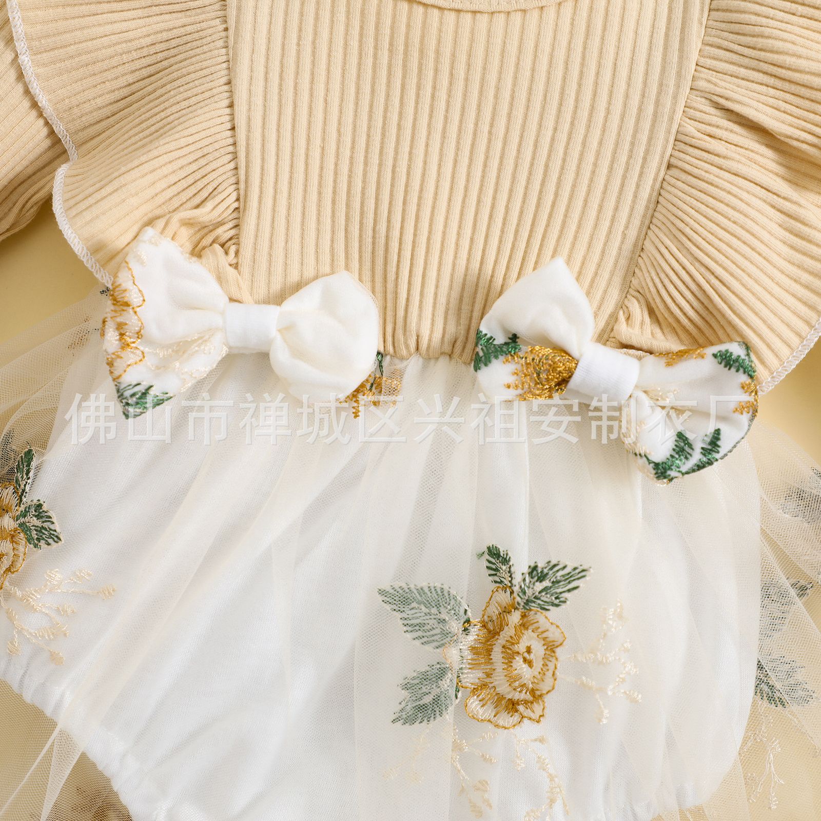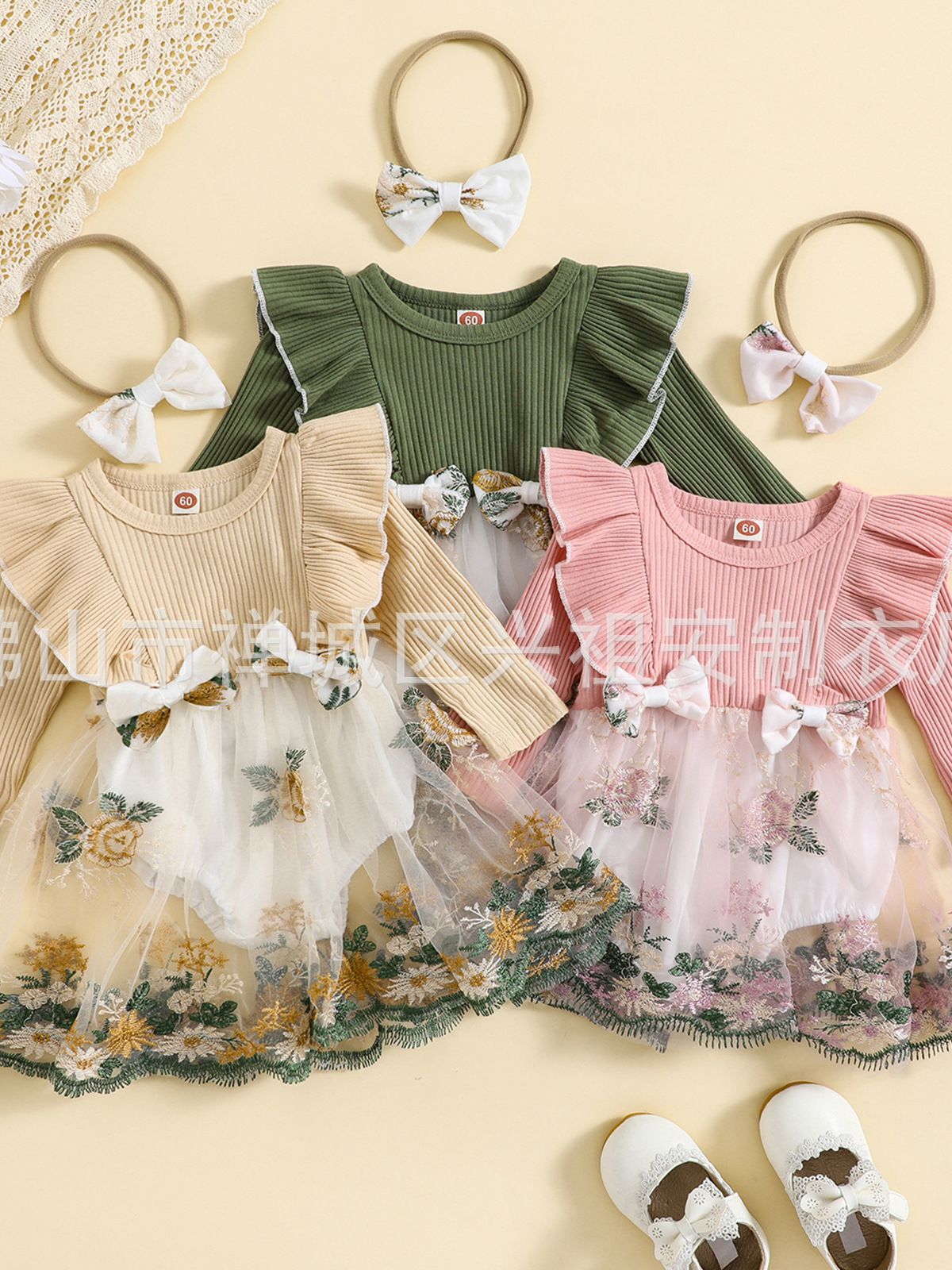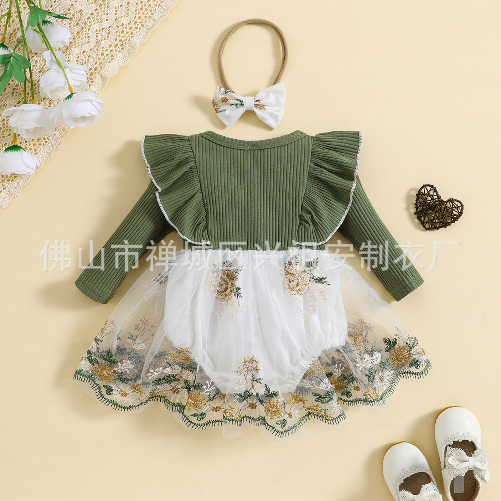 새로운 아기 소녀 봄과 가을 주름 긴 소매 모자이크 꽃 메쉬 패션 원피스