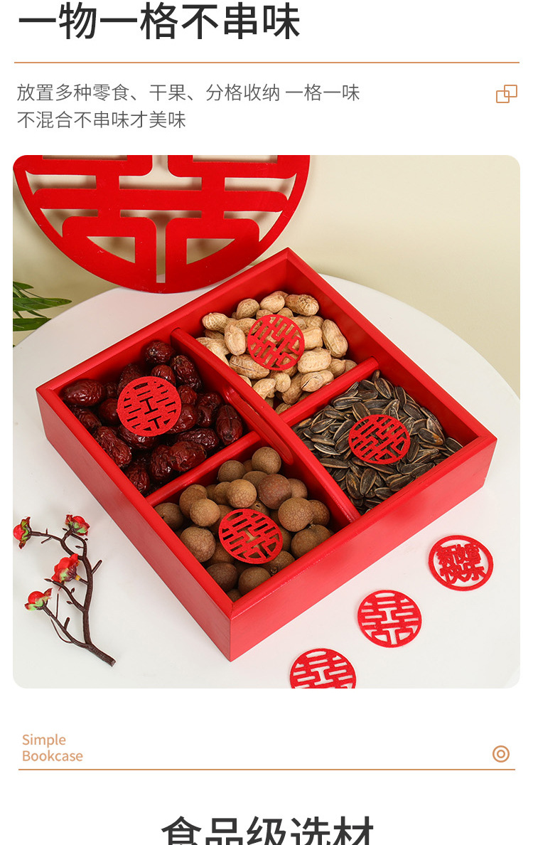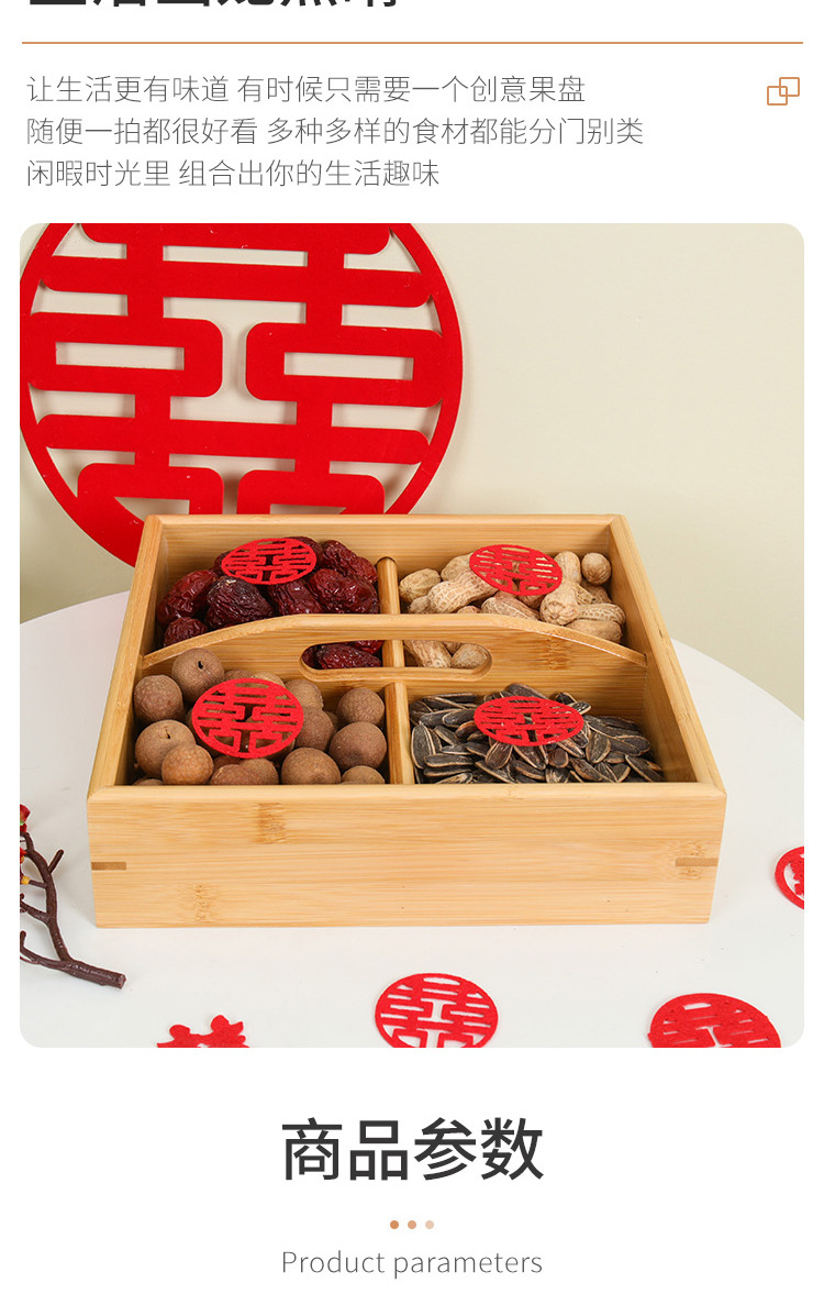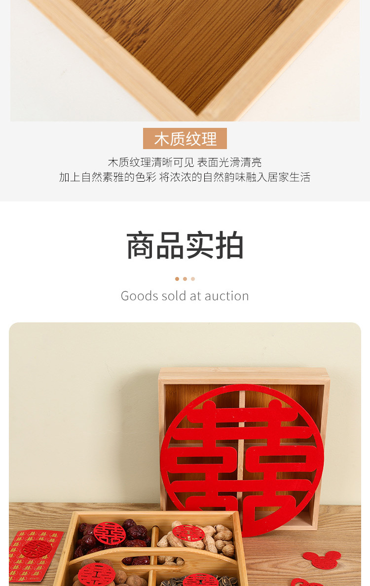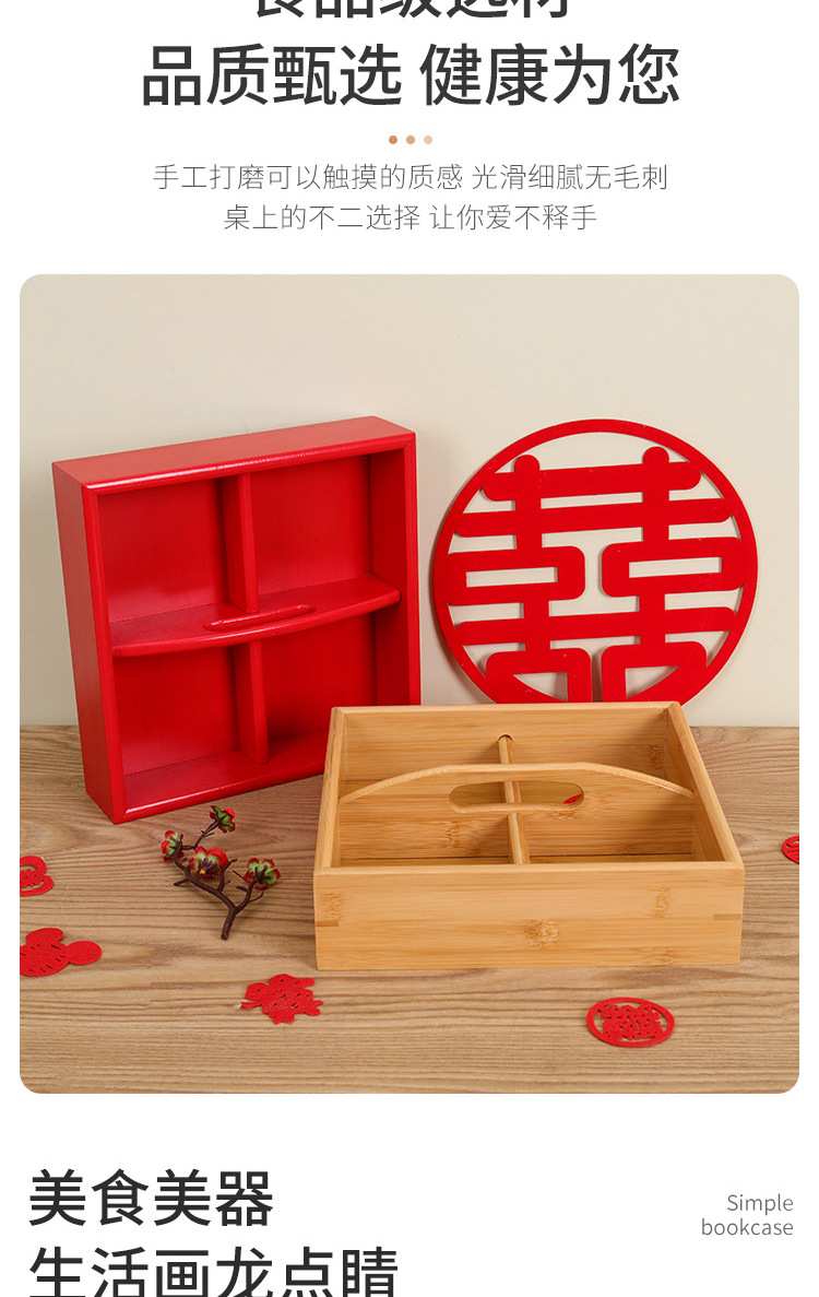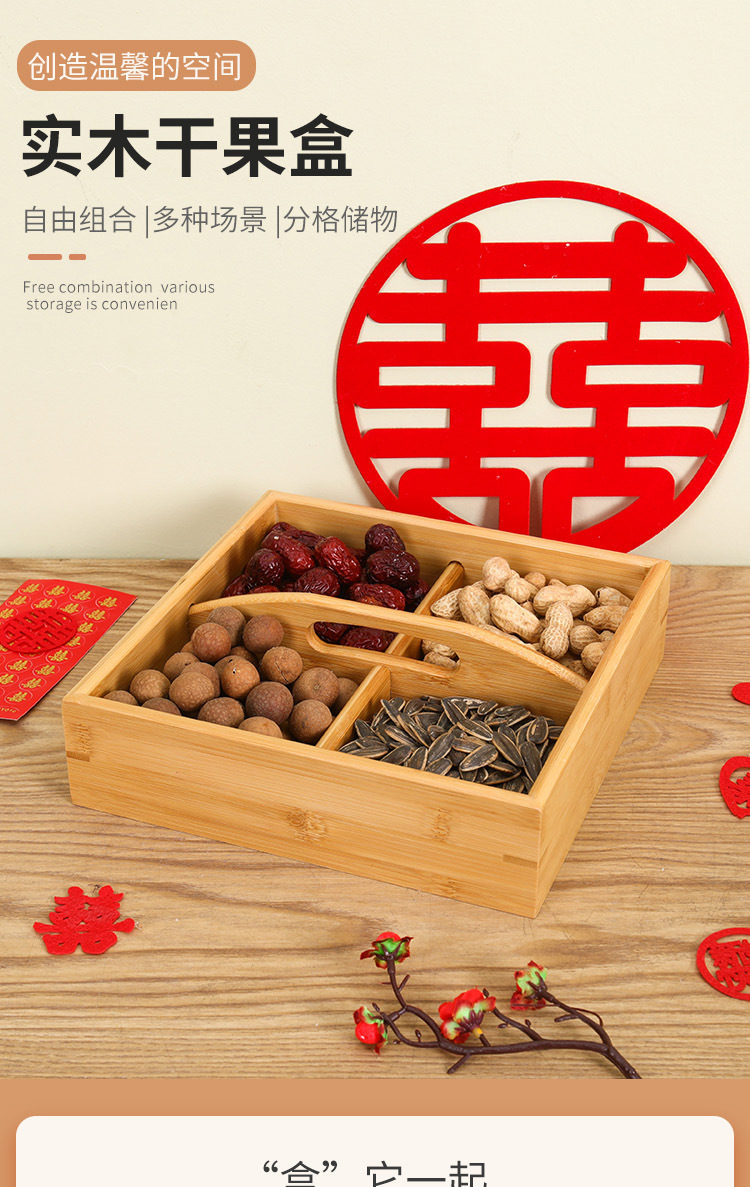약혼 건조 과일 상자 장식품 네 궁전 격자 휴대용 상자 결혼식 조기 출산 고귀한 아이 조각 대나무 나무 용광로 건조 과일 접시 도매스토어 가기