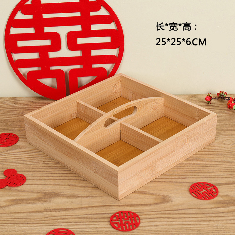 약혼 건조 과일 상자 장식품 네 궁전 격자 휴대용 상자 결혼식 조기 출산 고귀한 아이 조각 대나무 나무 용광로 건조 과일 접시 도매