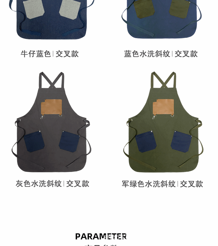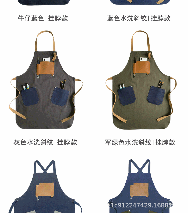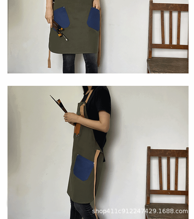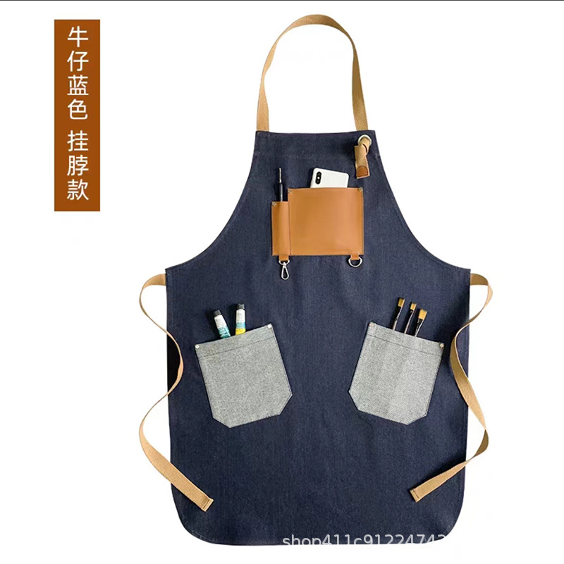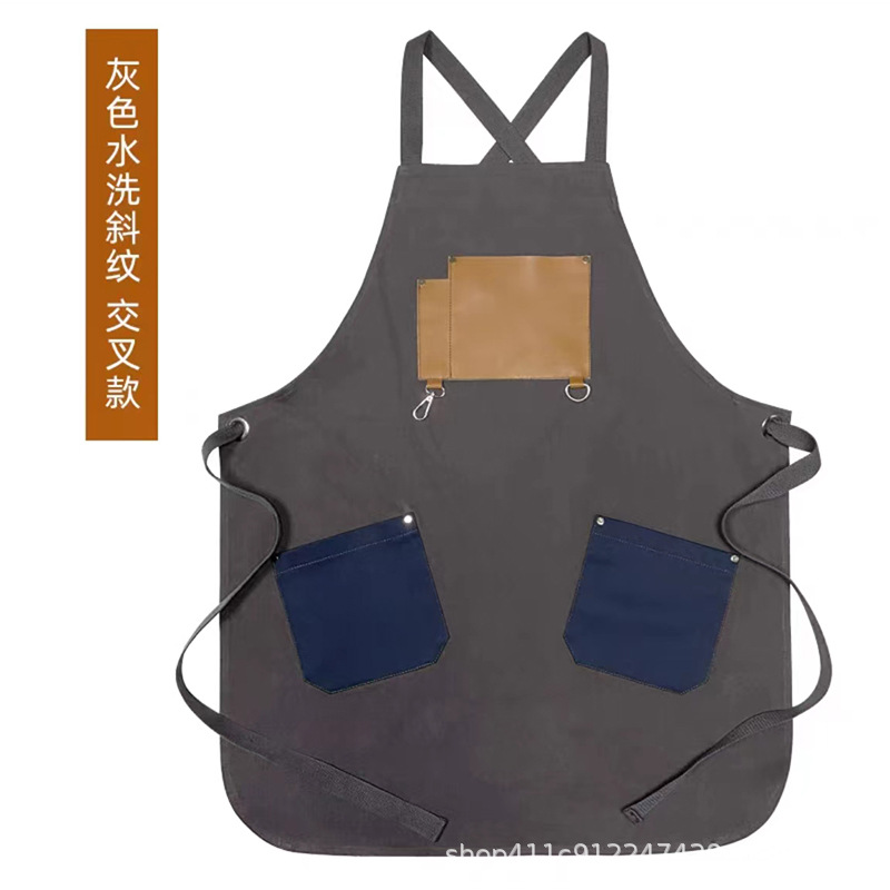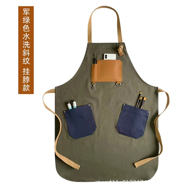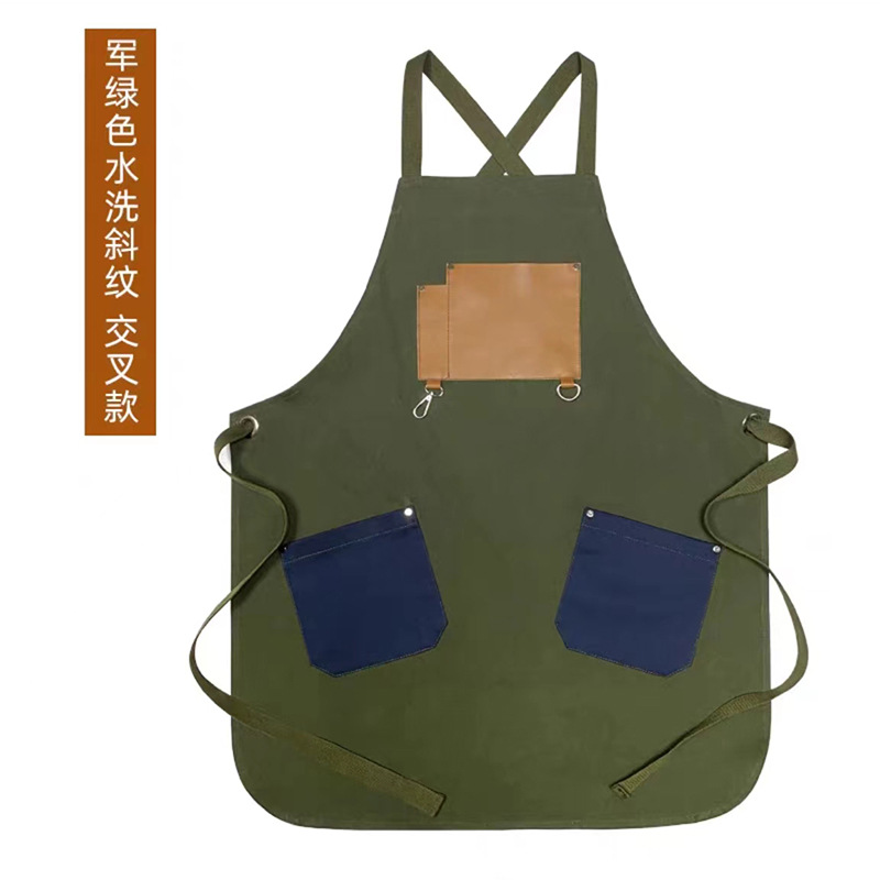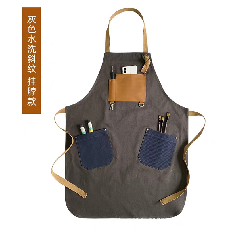 국경 간 두꺼운 내마모성 레트로 세척 캔버스 앞치마 스튜디오 이발사 원예 바베큐 앞치마 도매 처리