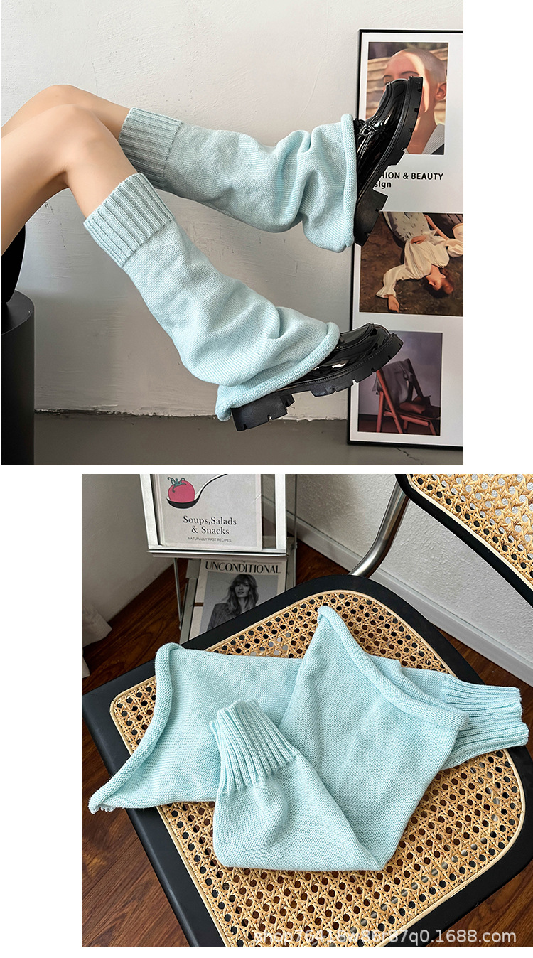 여학생을위한 두꺼운 니트 혼 양말 하위 문화 다리 커버 y2k 와이드 레그 핫 걸스 더미 양말 단색 슬리밍 여름스토어 가기