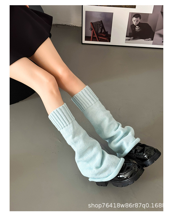 여학생을위한 두꺼운 니트 혼 양말 하위 문화 다리 커버 y2k 와이드 레그 핫 걸스 더미 양말 단색 슬리밍 여름