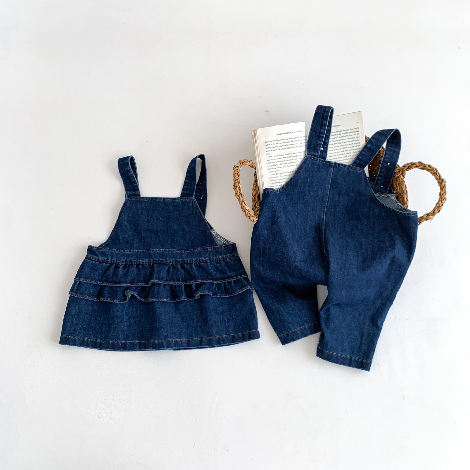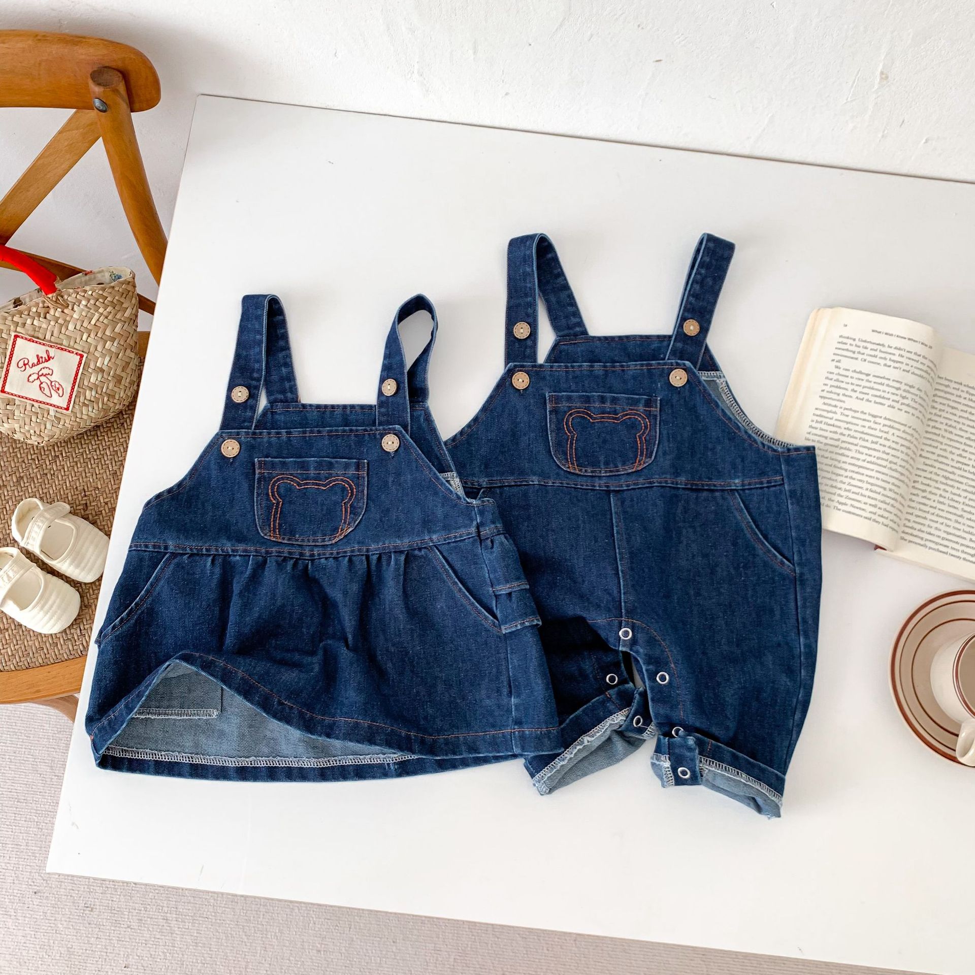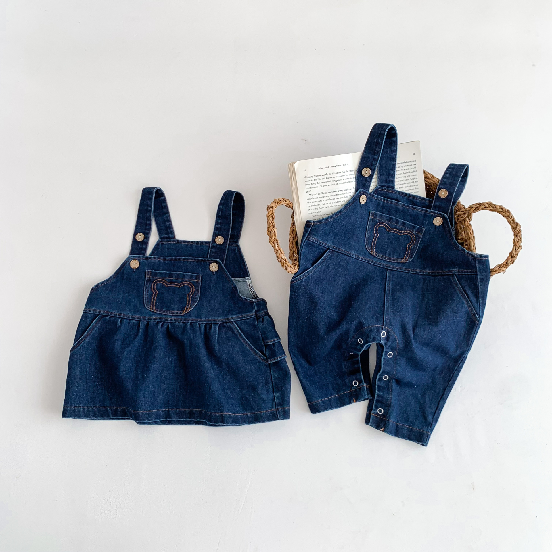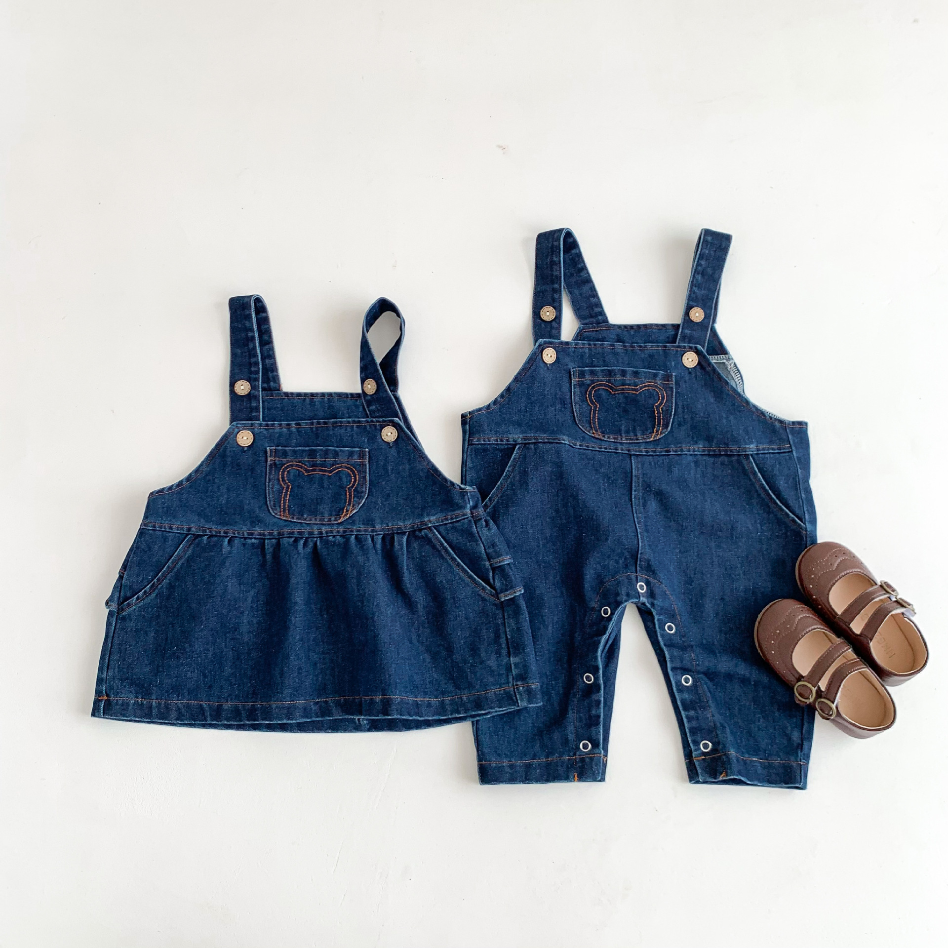 한국 스타일의 새로운 서스펜더 바지 서스펜더 스커트 봄 가을 소년과 소녀 아기 부드러운 데님 아기 면화 곰 머리 청바지 패션스토어 가기