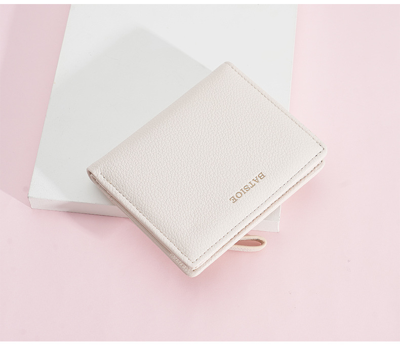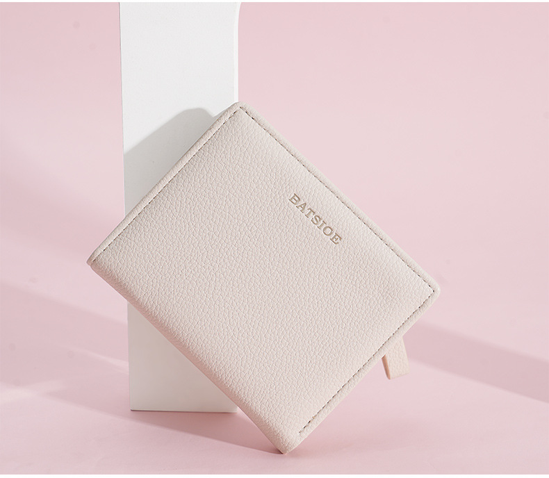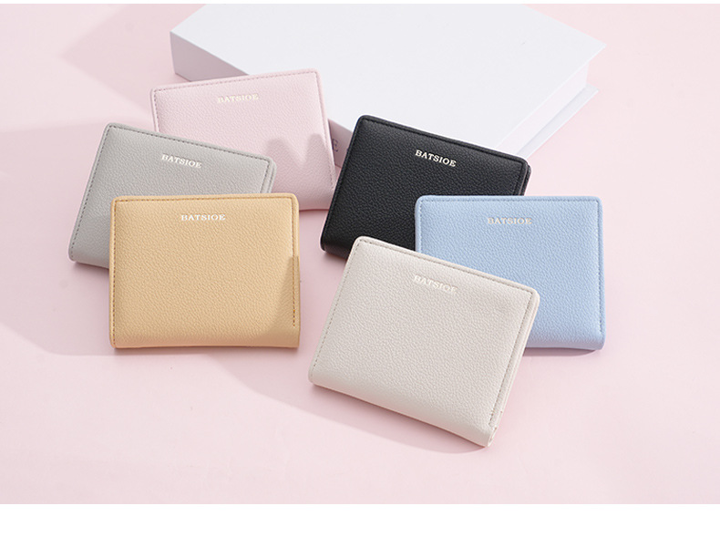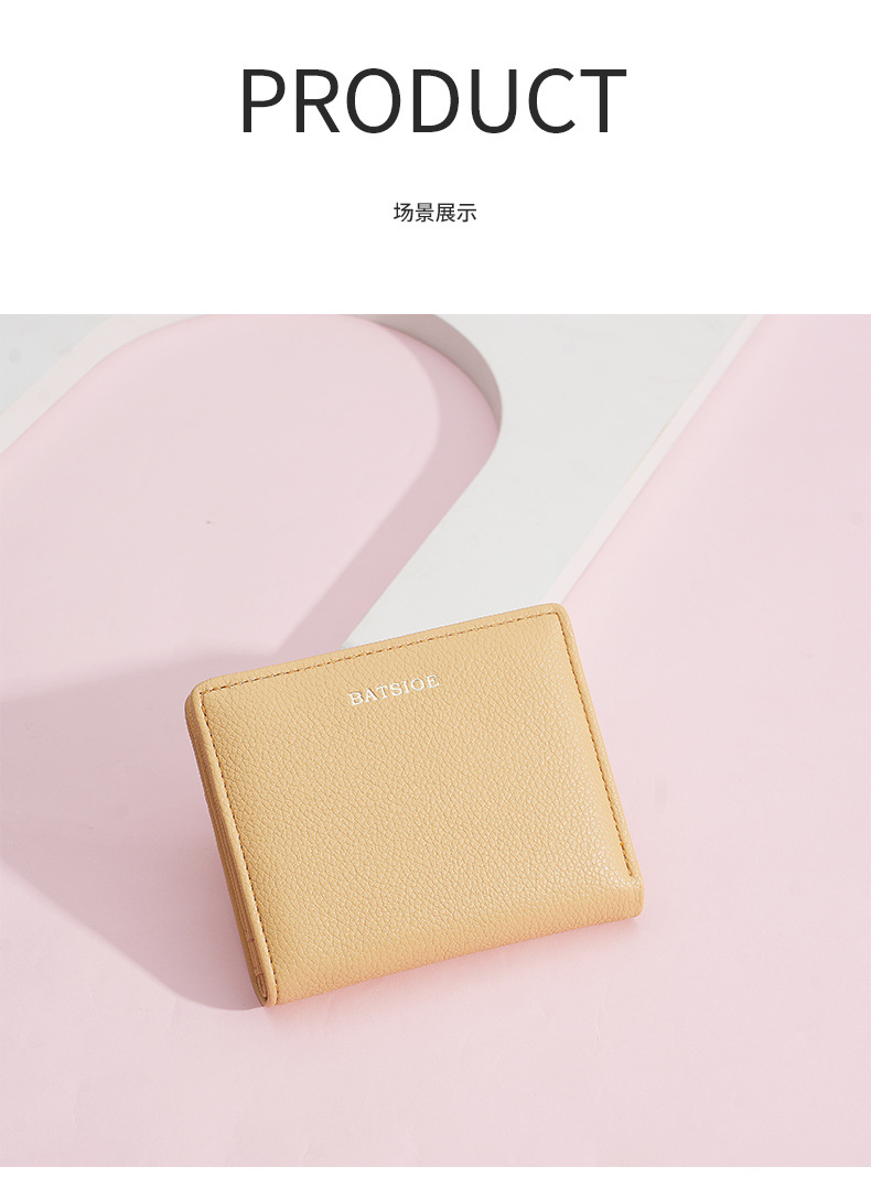 BATSIOE 새로운 단색 질감 학생 가방 짧은 여성 지갑 간단한 고급 지갑 동전 지갑 여성스토어 가기