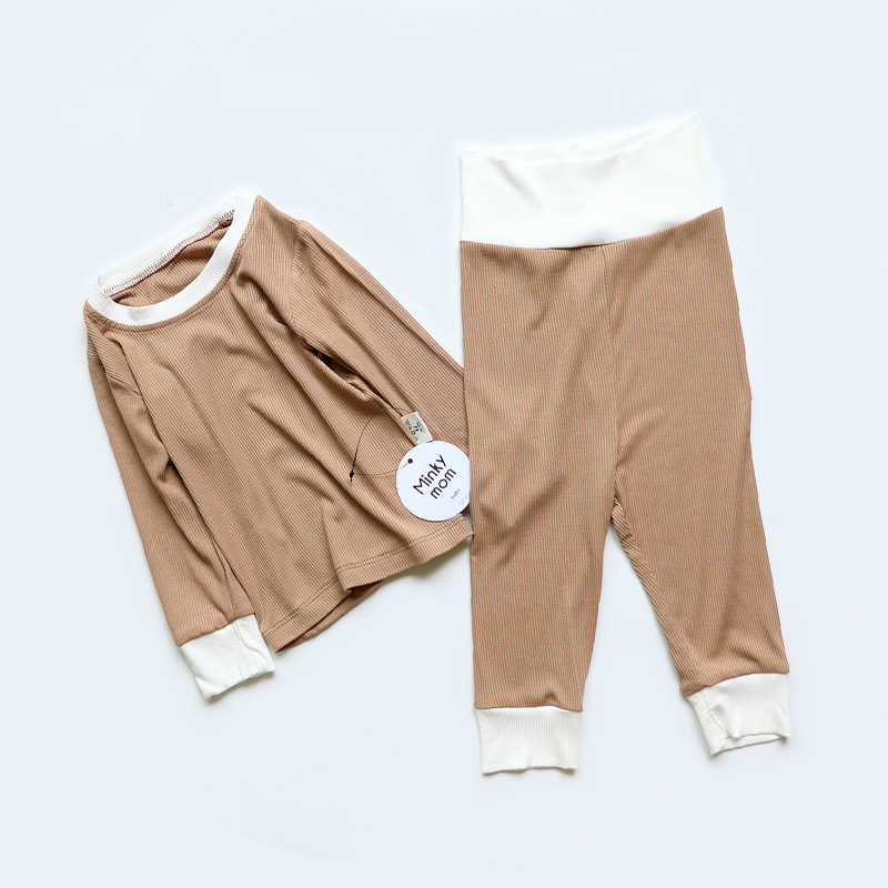 2023 가을 긴 소매 바지 배꼽 높은 허리 아기 소년과 소녀 minkhymom 가정 옷 2 세트스토어 가기