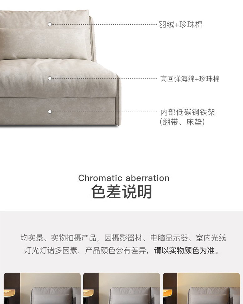 고급 소파 베드 접이식 가정용 기술 천 이중 사용 거실 연구 소형 아파트 크림 색상 다기능 조명 럭셔리스토어 가기