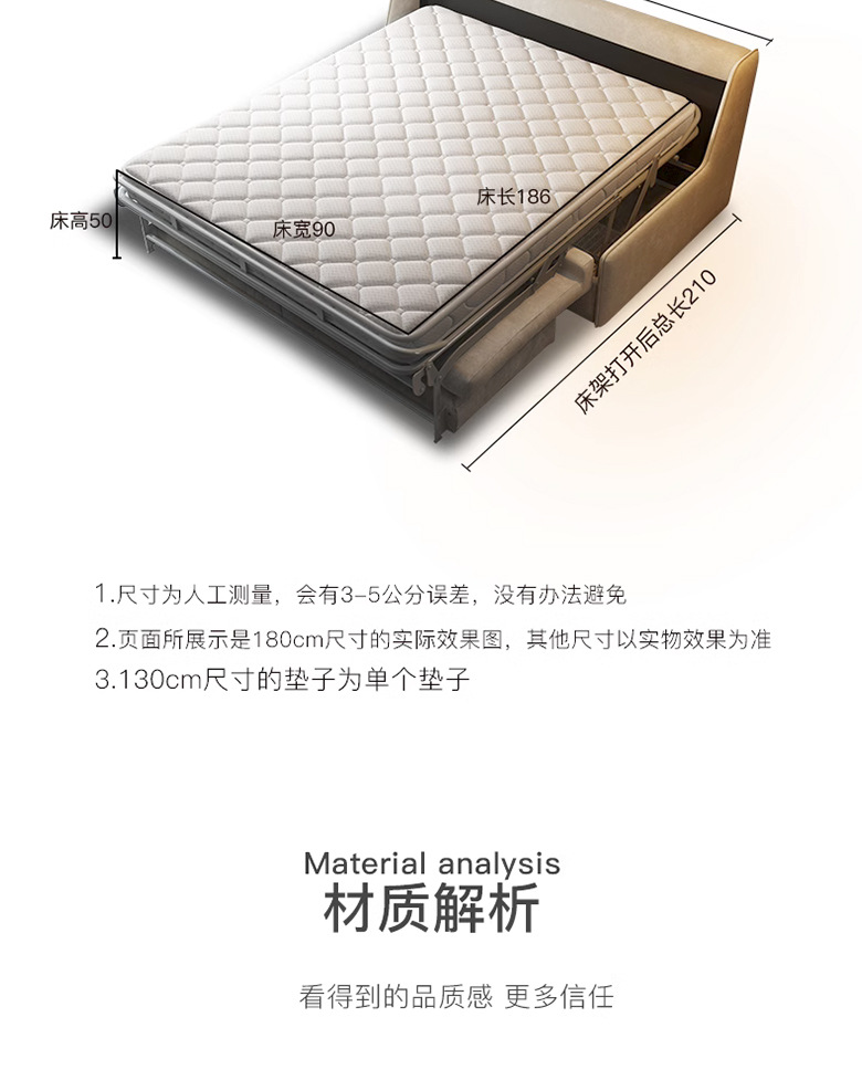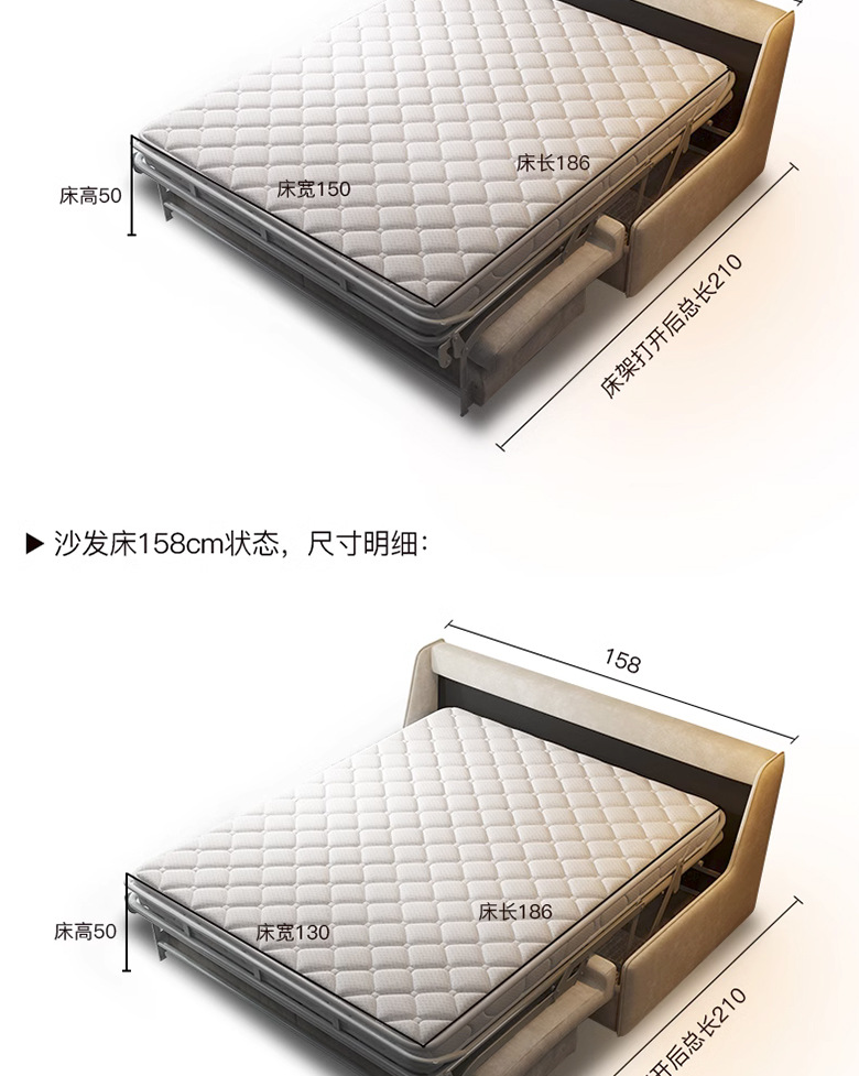 • [매트리스 첨부 고급형 소파 베드] 1.58 m 촘촘한 감귤 고양이 발톱 천