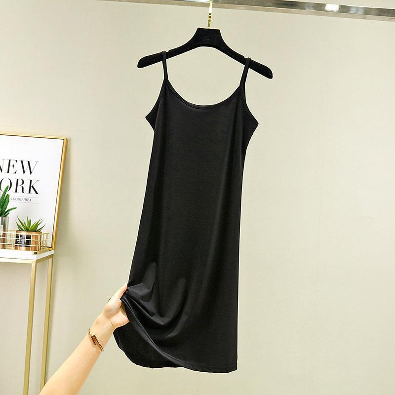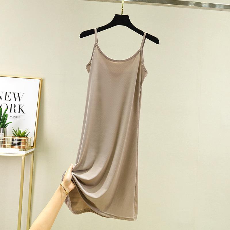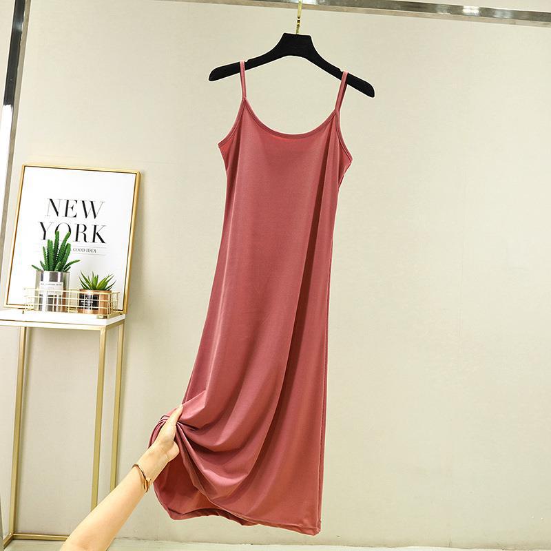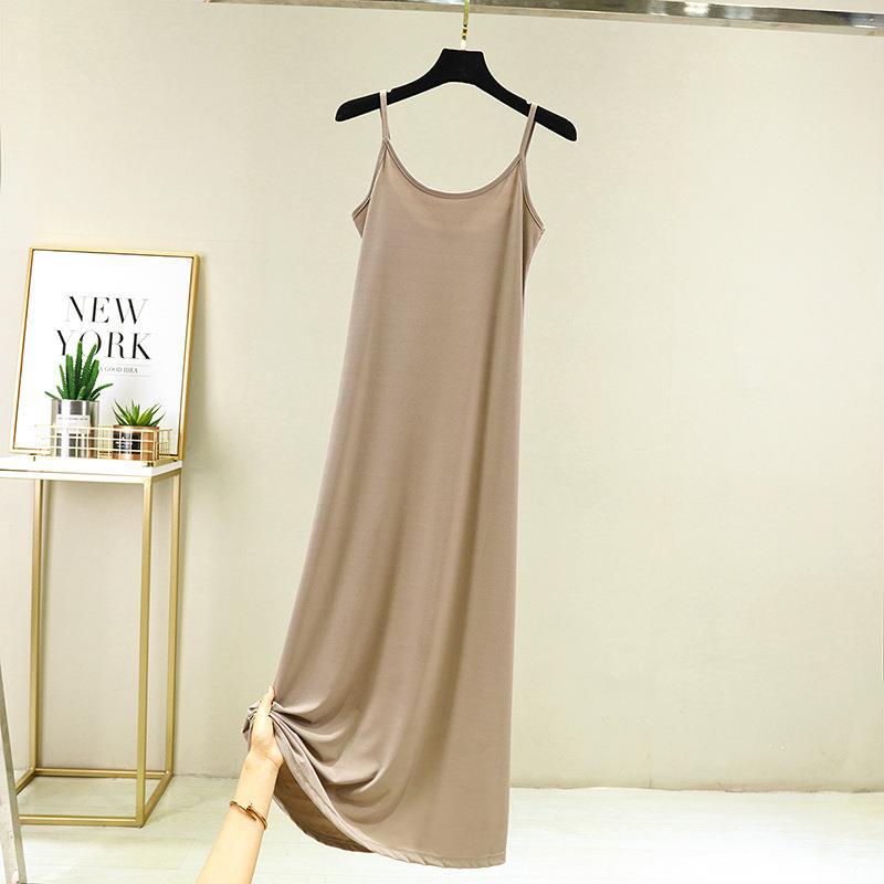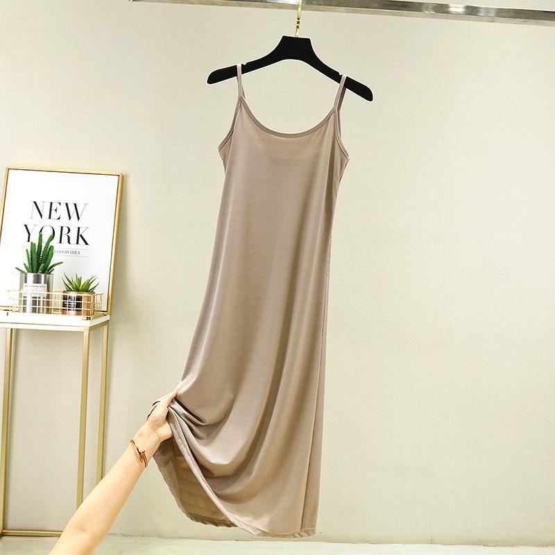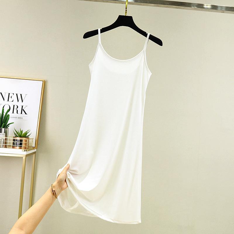 모달 슬립 스커트 긴 느슨한 안티 침투 내부 페티코트 화이트 베이스 조끼 플러스 사이즈 원피스 여성의 여름