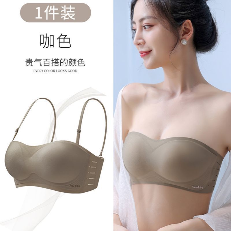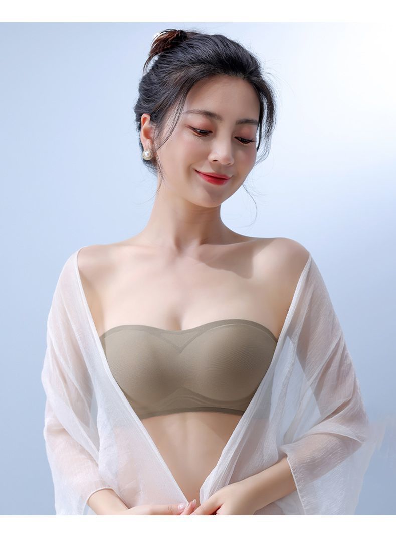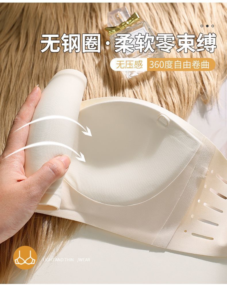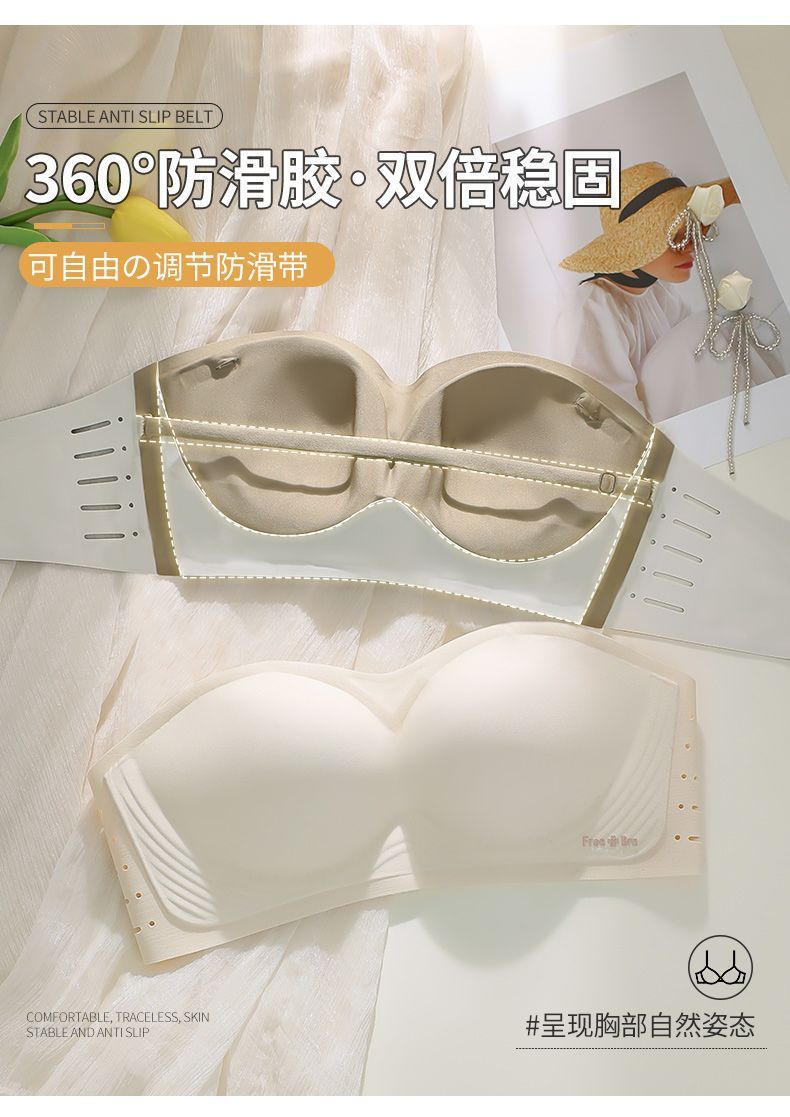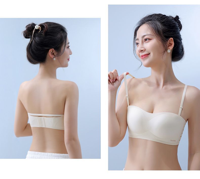 새로운 스타일 끈이 없는 속옷 여성용 미끄럼 방지 작은 가슴 푸시 업 미끄럼 방지 튜브 탑 브라 아름다운 등 추적 브래지어 여름스토어 가기