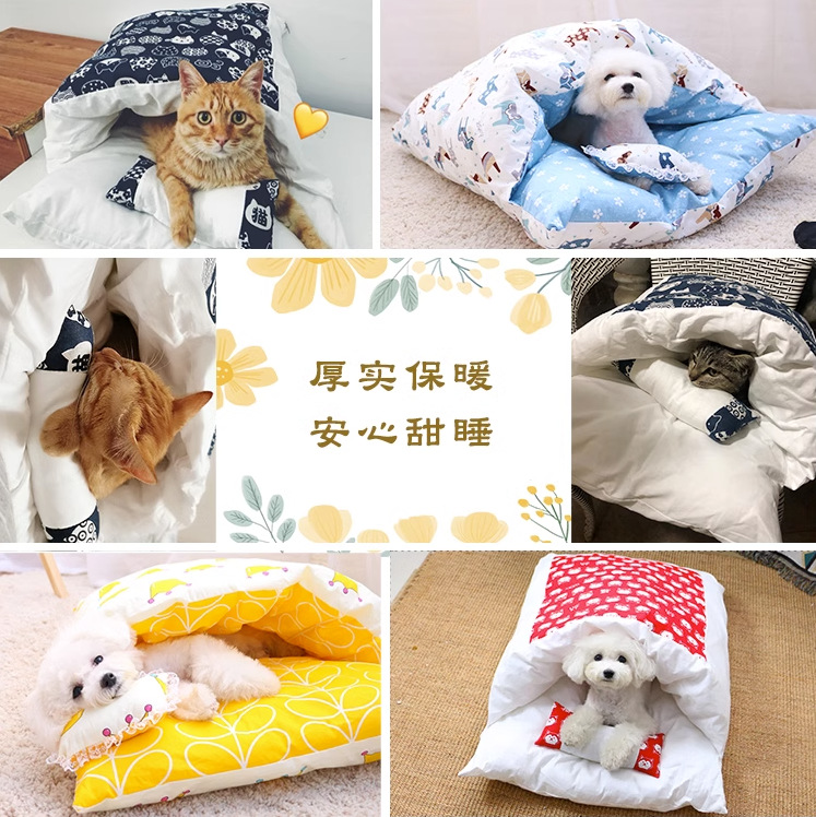 고양이 애완 동물 겨울 수면 면 보호 가을과 겨울 일본식 이동식 및 빨 고양이 침낭 크로스 보더 무료 배송 고양이 둥지스토어 가기