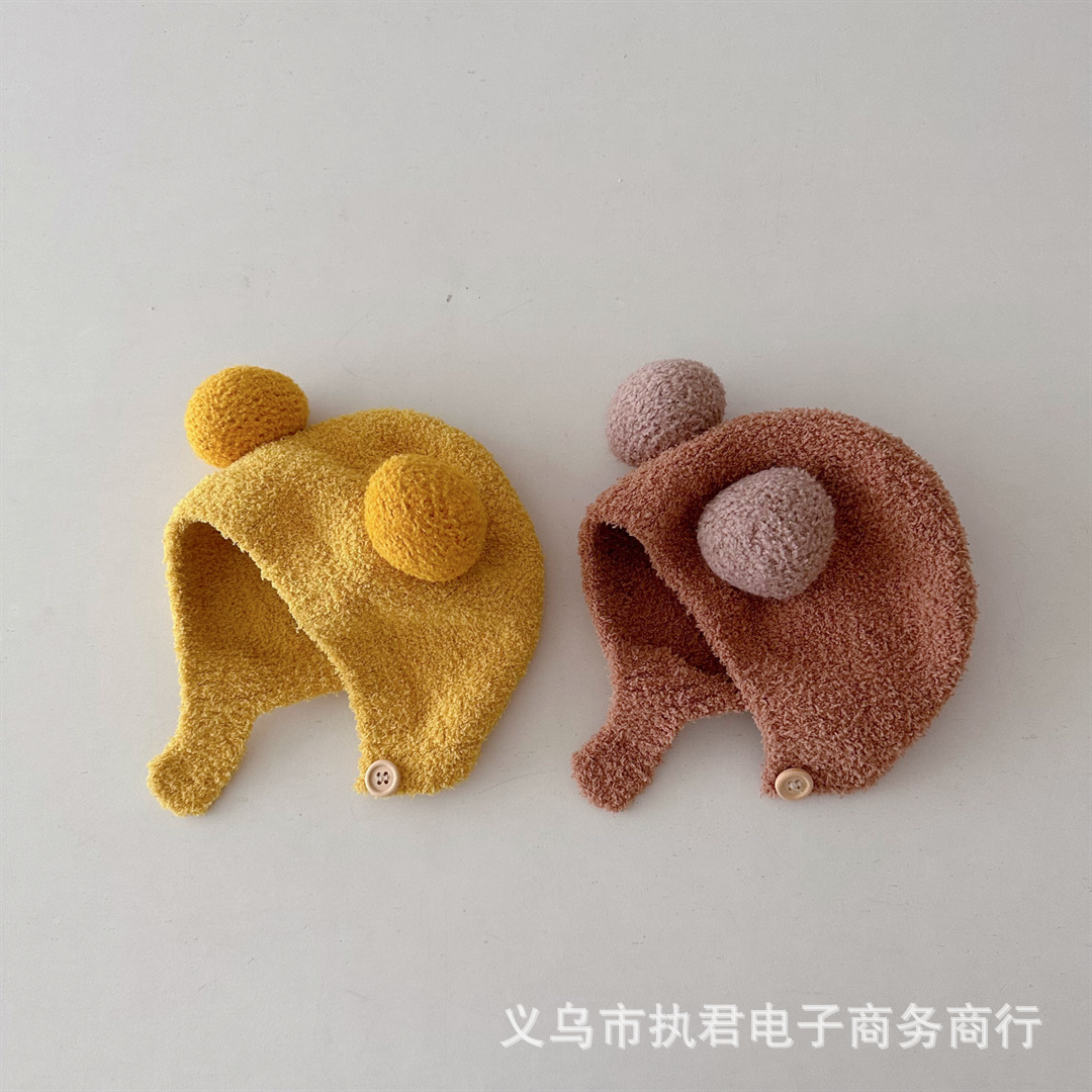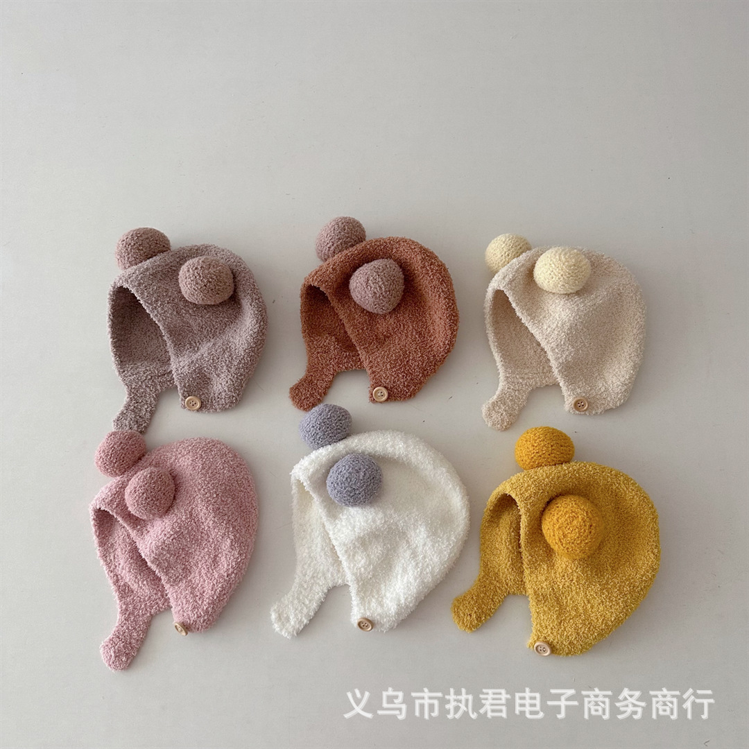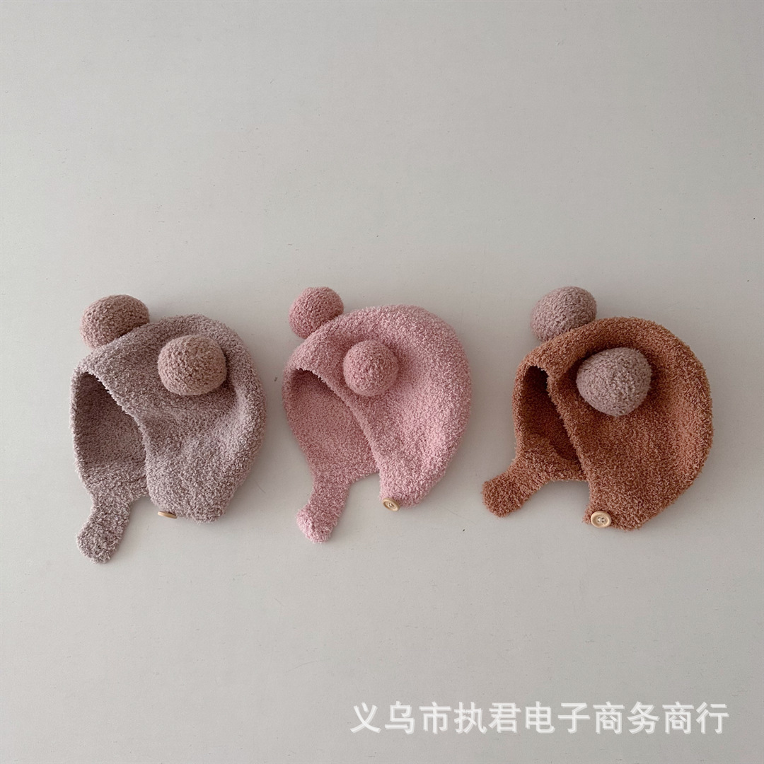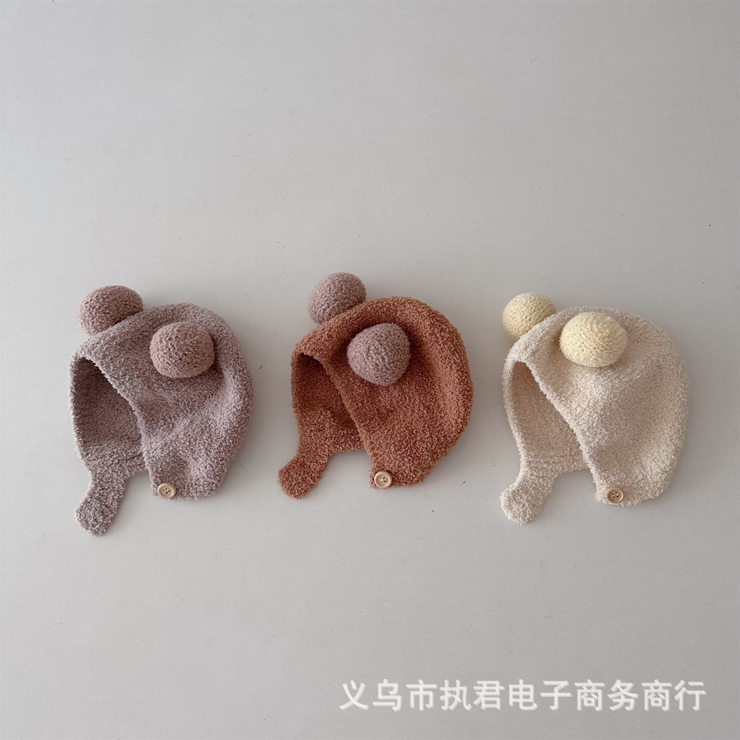 가을과 겨울에 한국 스타일 새로운 아기 귀 보호 모자 따뜻한 방한 모자 편안한 아기 더블 볼 부드러운 왁스 Baotou 모자 유행
