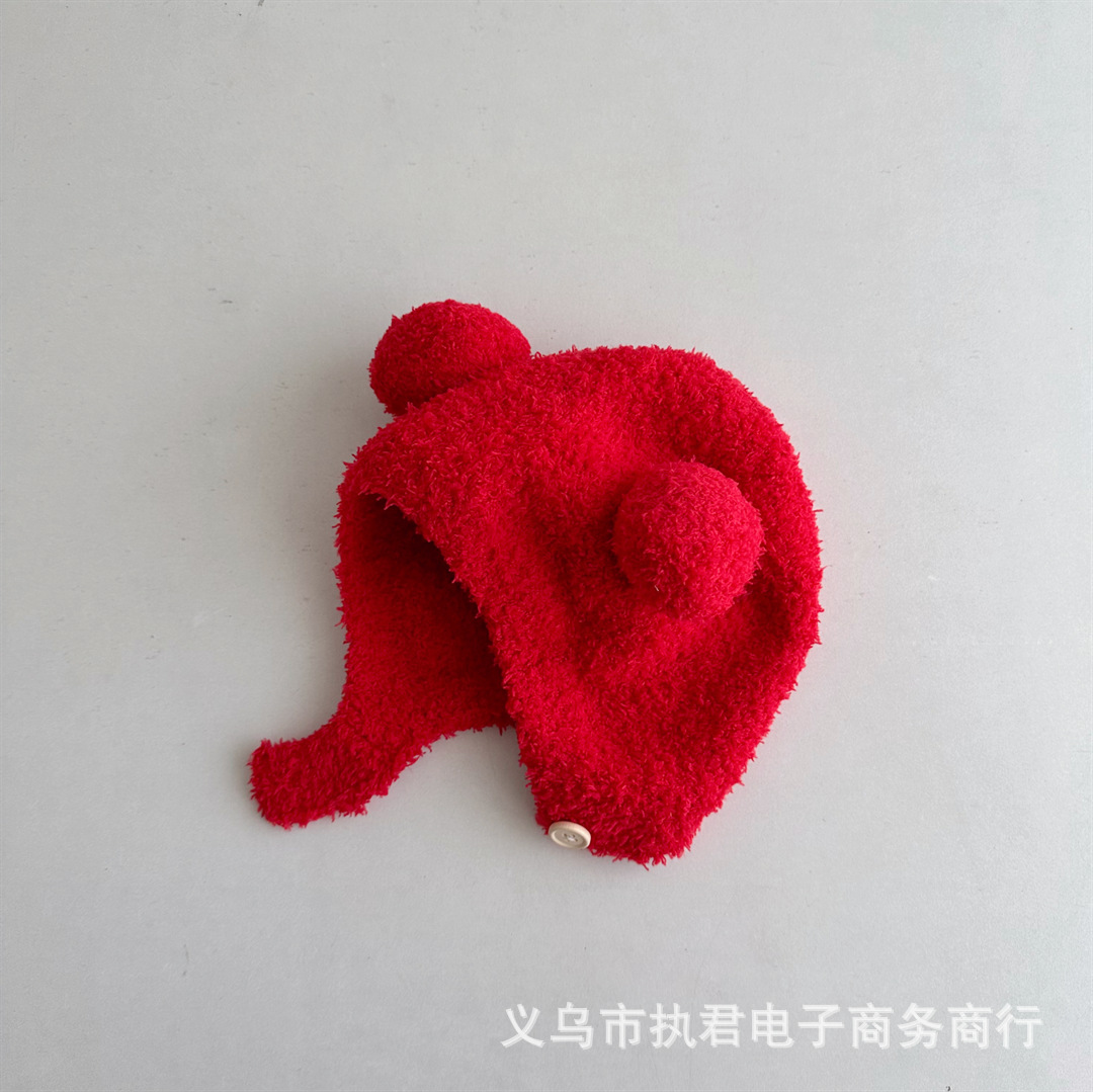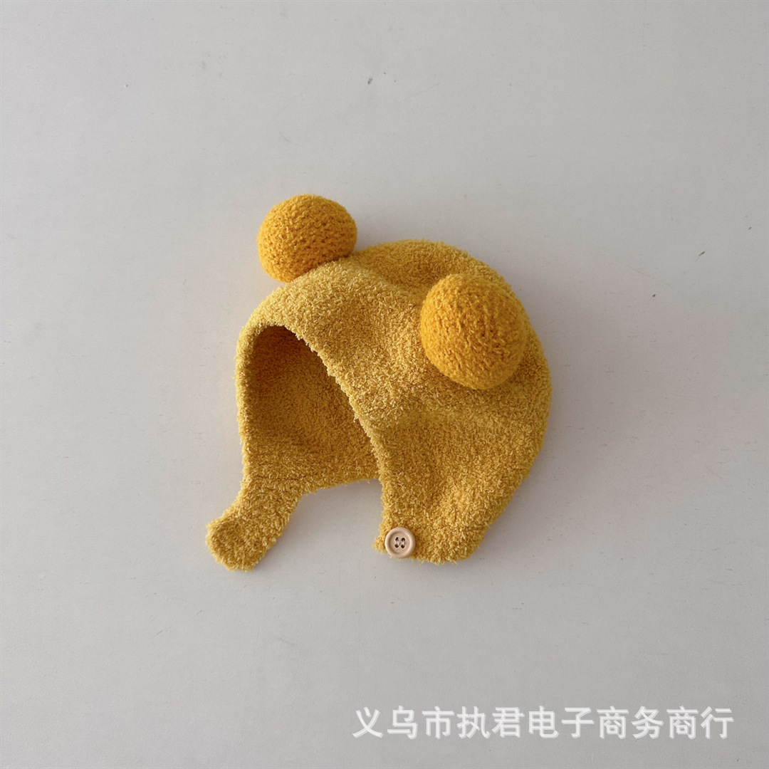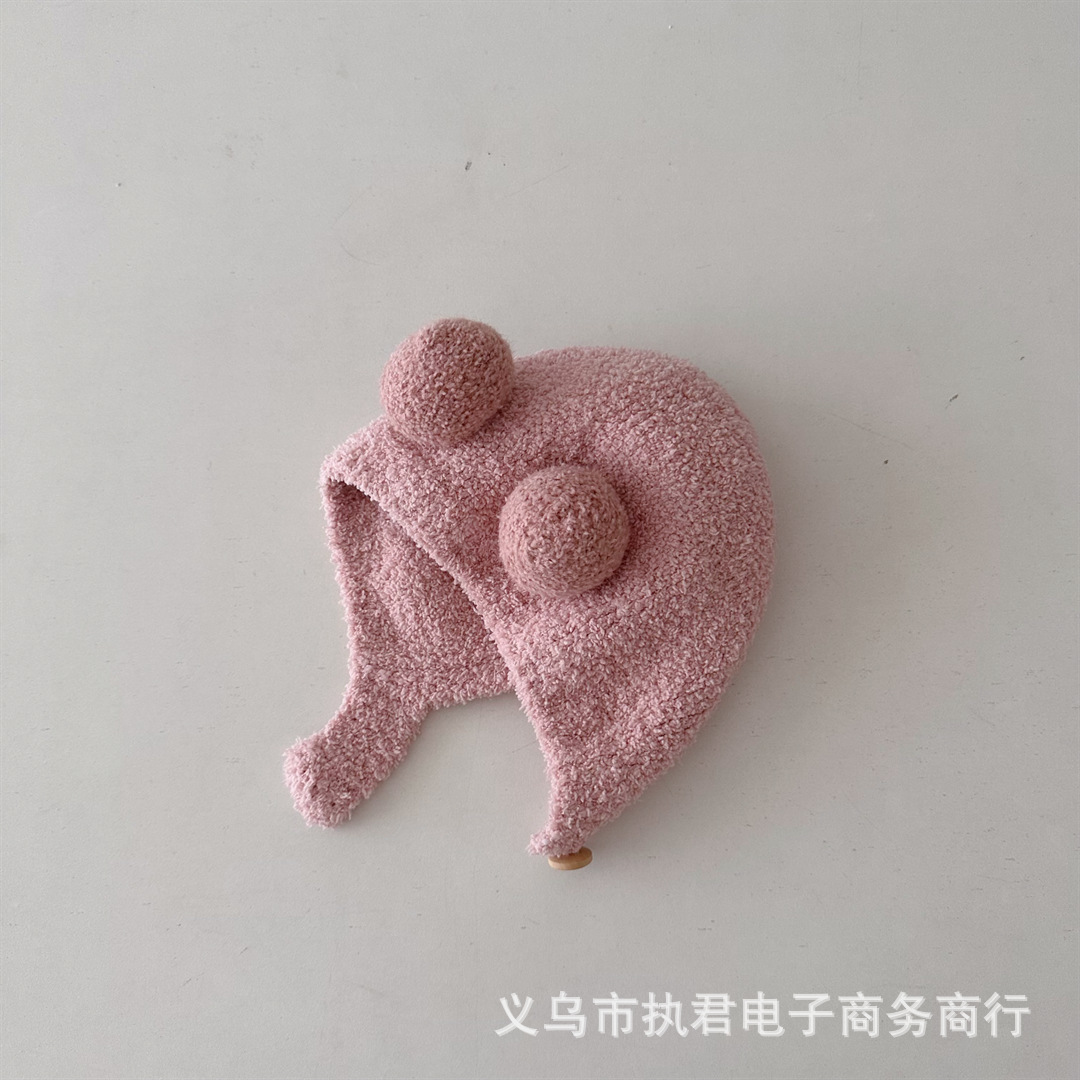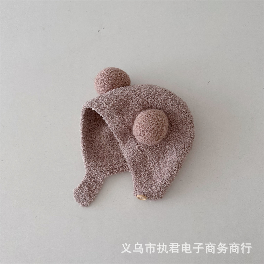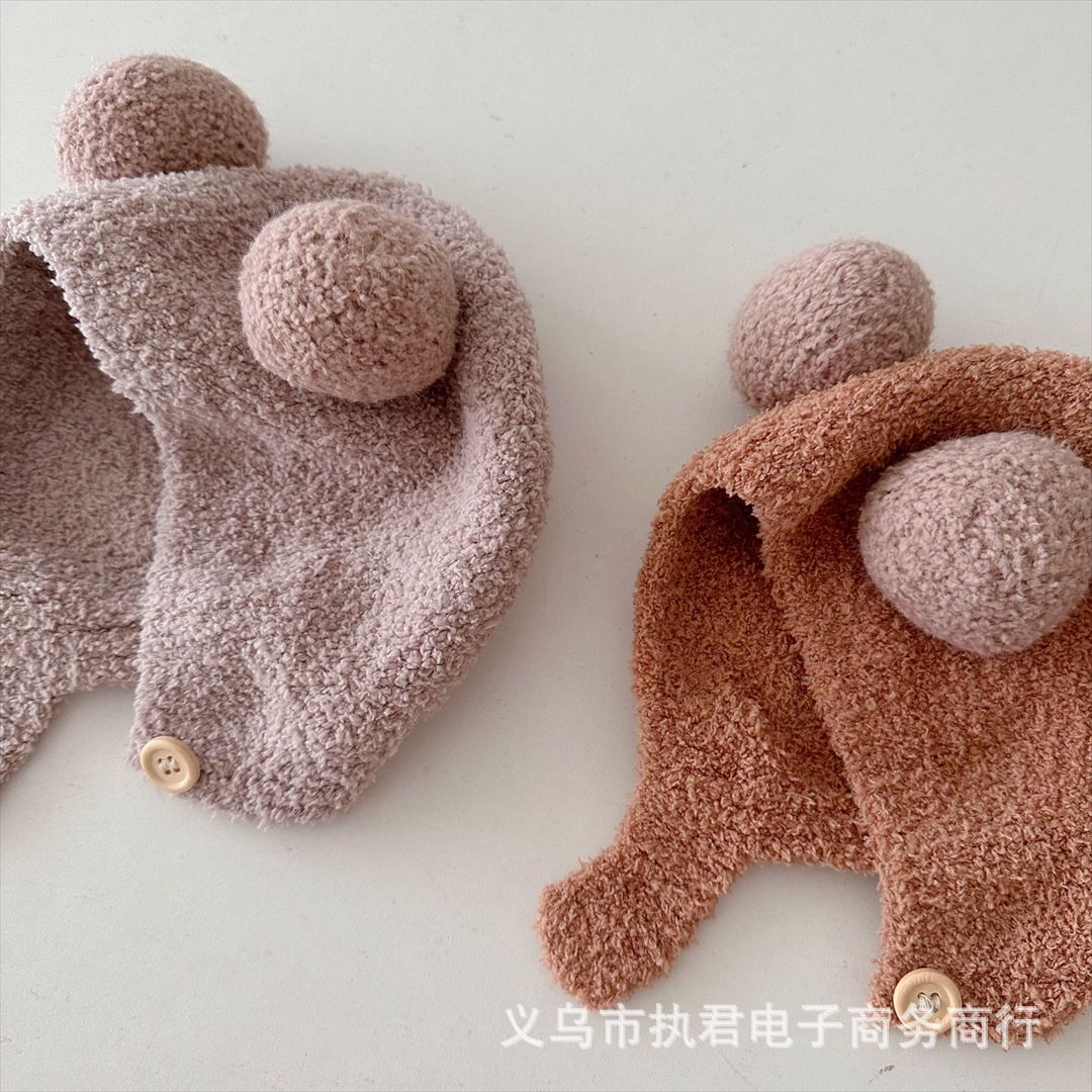 가을과 겨울에 한국 스타일 새로운 아기 귀 보호 모자 따뜻한 방한 모자 편안한 아기 더블 볼 부드러운 왁스 Baotou 모자 유행