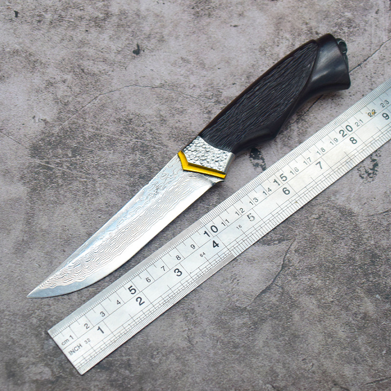 공장 아울렛 야외 칼 다마스커스 스틸 스트레이트 나이프 황야 생존 흑단 손잡이 고기 과일 칼