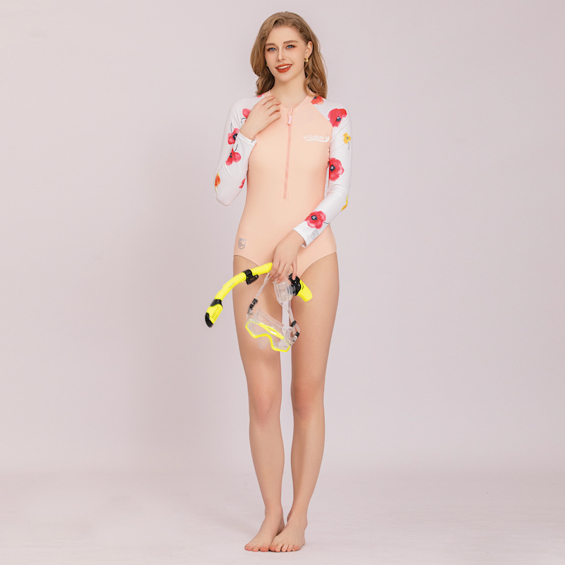 여성용 수영복 2023 여름 신작 원피스 긴팔 고가치 수영복은 배를 커버하고 슬림해 보이고 자외선 차단 기능이 있는 보수적인 수영복입니다.스토어 가기