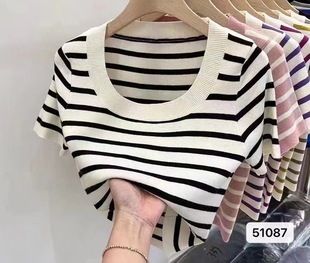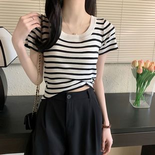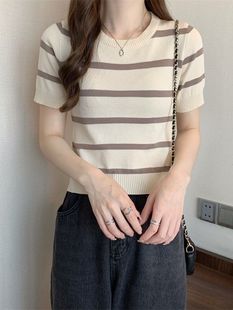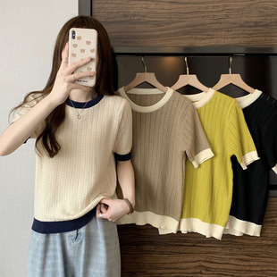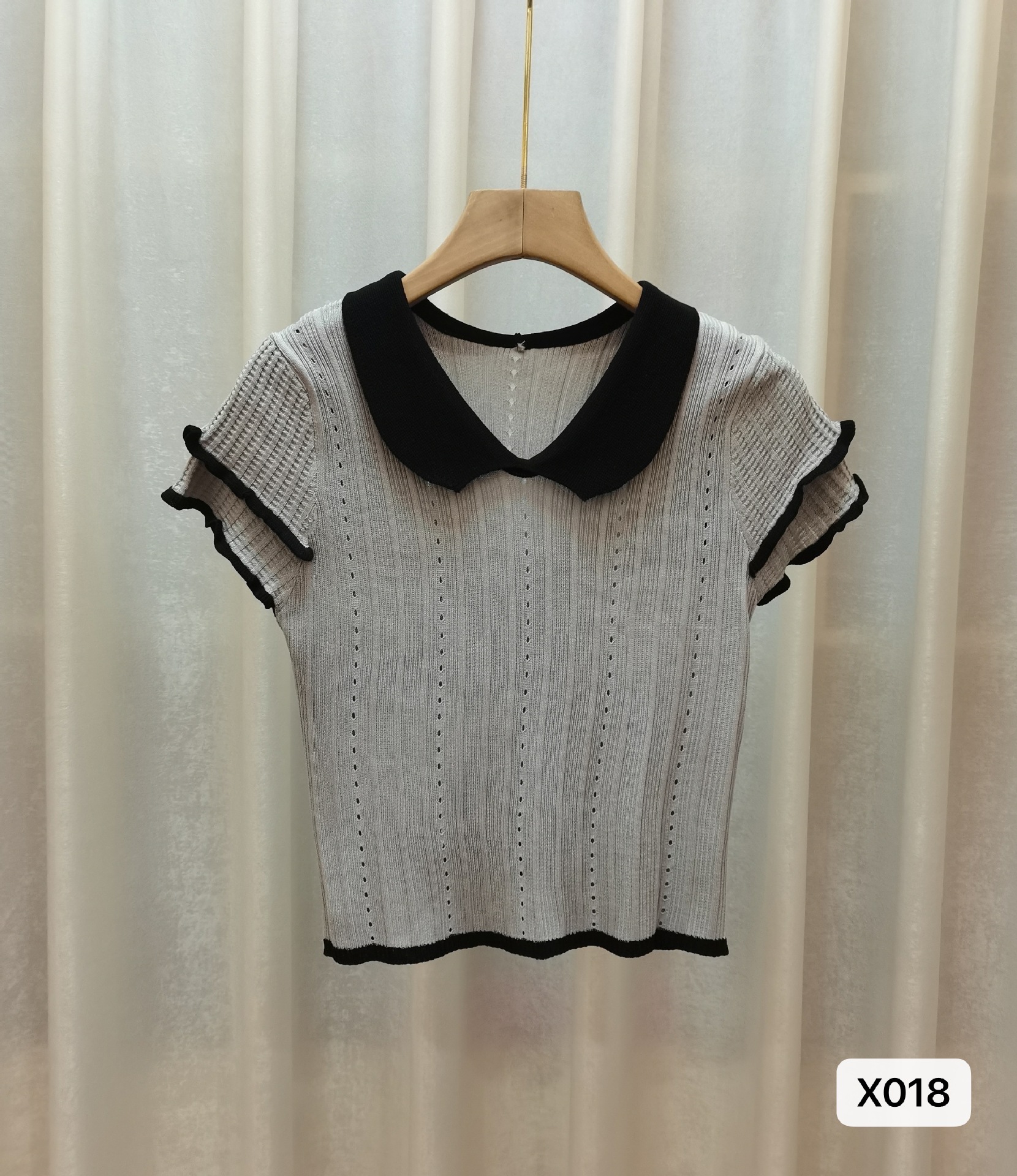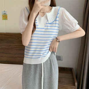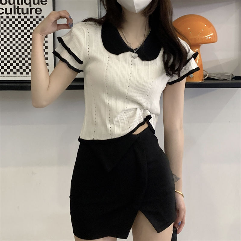 2023 여름 새 인형 칼라 니트 스웨터 한국 스타일 디자인 감각 틈새 작은 비행 소매 반팔 탑 작은 여성스토어 가기