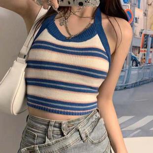 2023 여름 새 인형 칼라 니트 스웨터 한국 스타일 디자인 감각 틈새 작은 비행 소매 반팔 탑 작은 여성