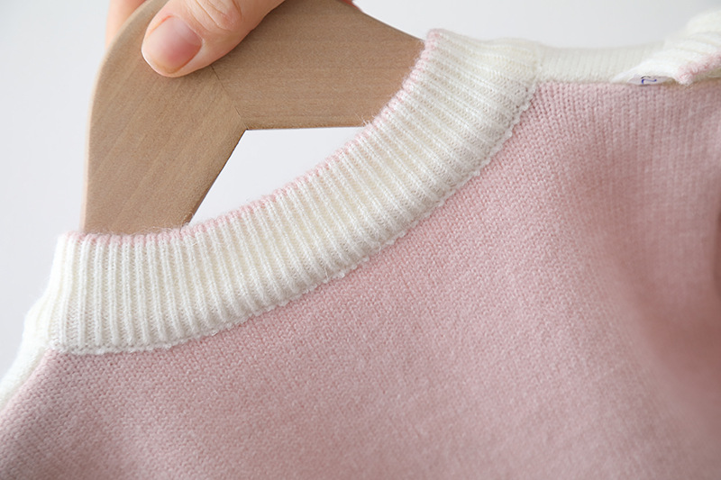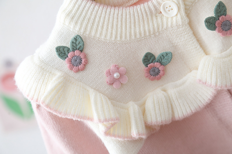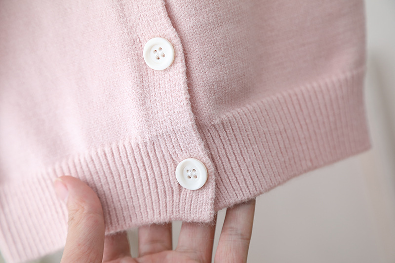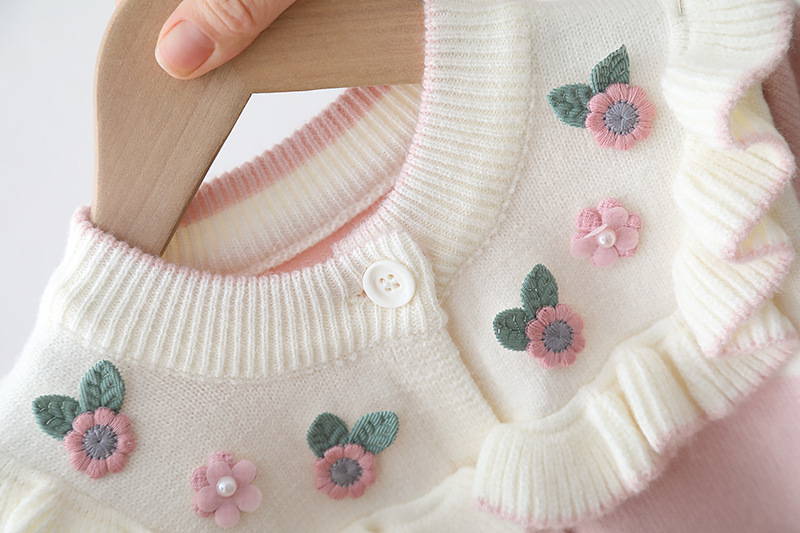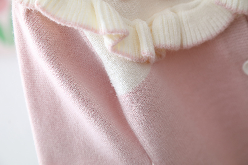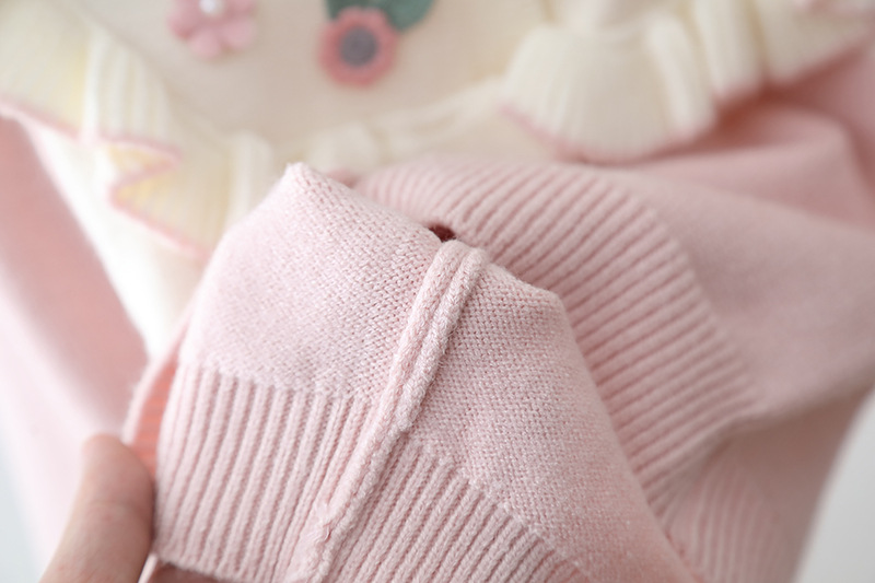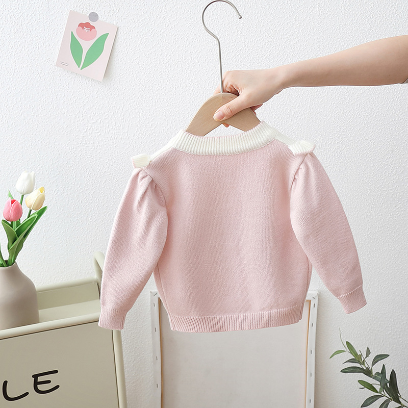 2023 가을과 겨울 한국 아동 스웨터 새로운 소녀 카디건 꽃 귀 라운드 넥