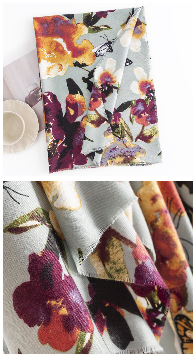 크로스보더 나비 프린트 모조 캐시미어 스카프 여성용 겨울 보온 숄 출퇴근용 다용도 방한 목 보호 스카프스토어 가기