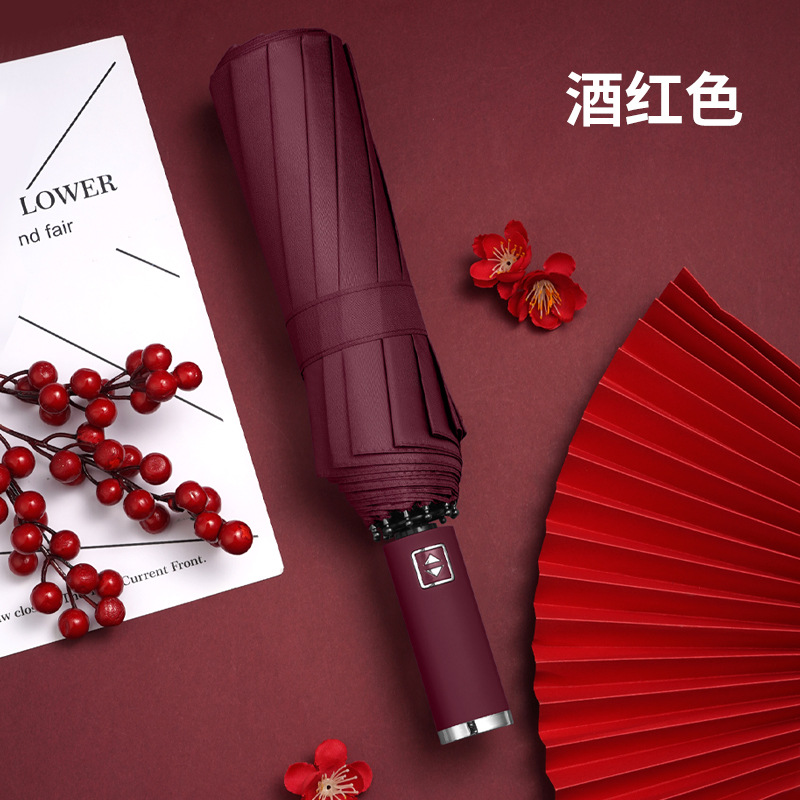 • 12 뼈 색상 일치 핸들 자동 우산 [버건디]