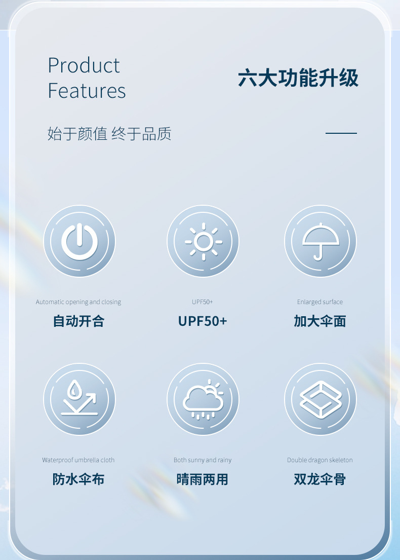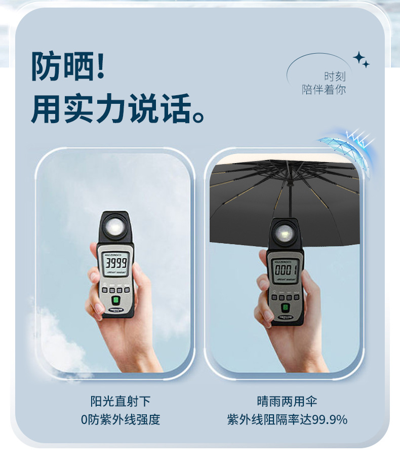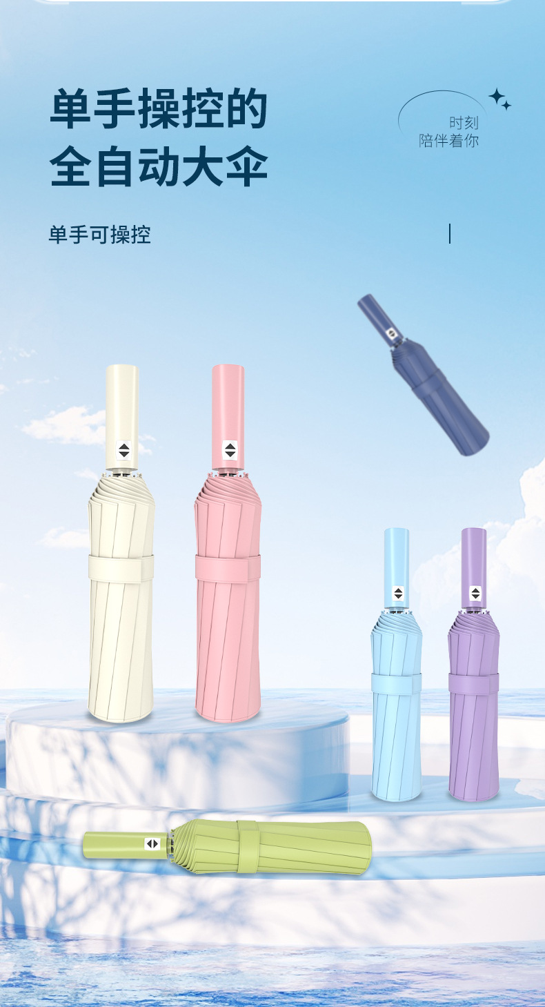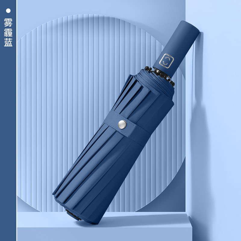 • 12 뼈 색 매칭 핸들 자동 우산 [헤이즈 블루]]