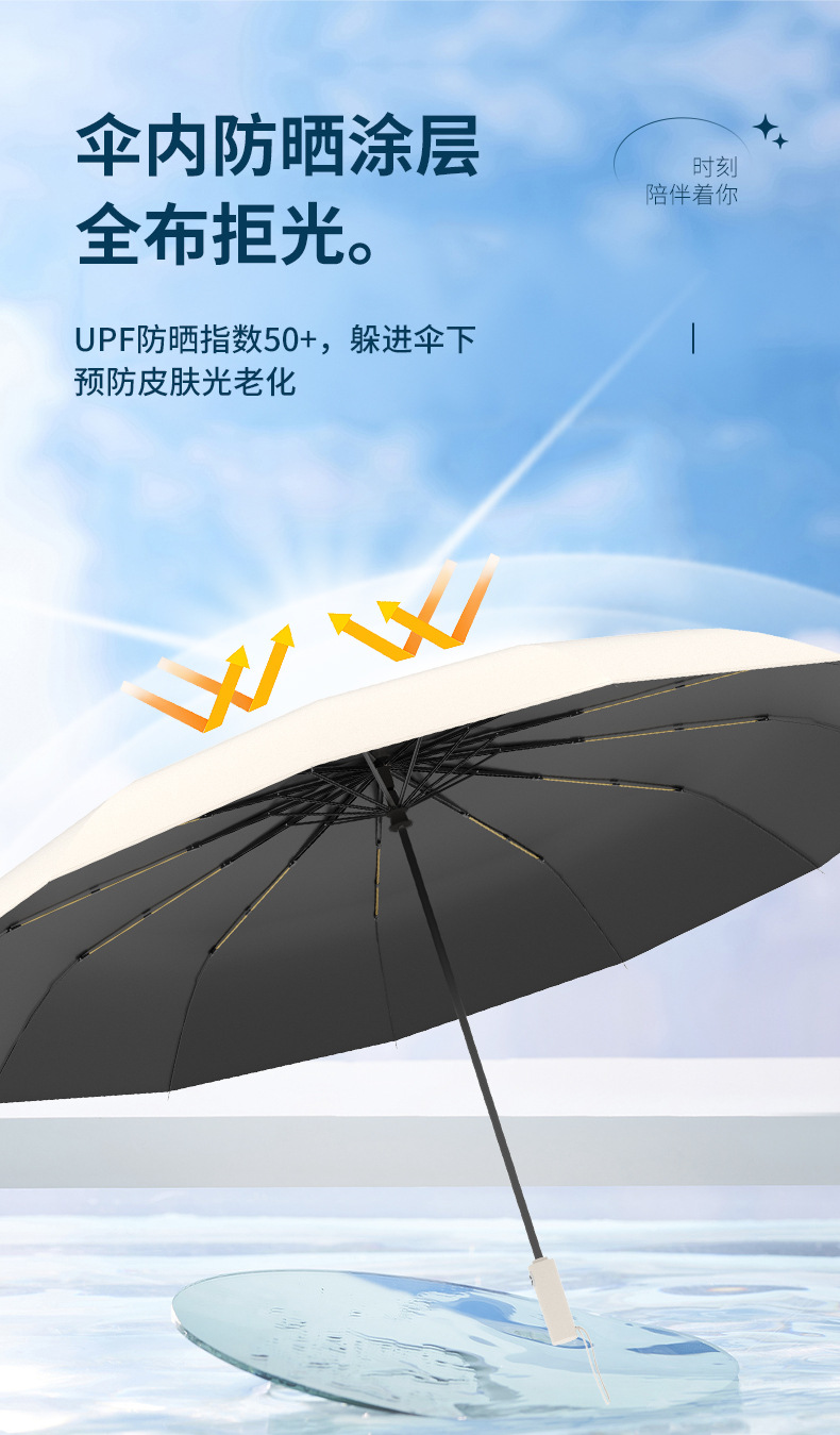 • 16 뼈 색 손잡이 자동 우산 [블랙]]