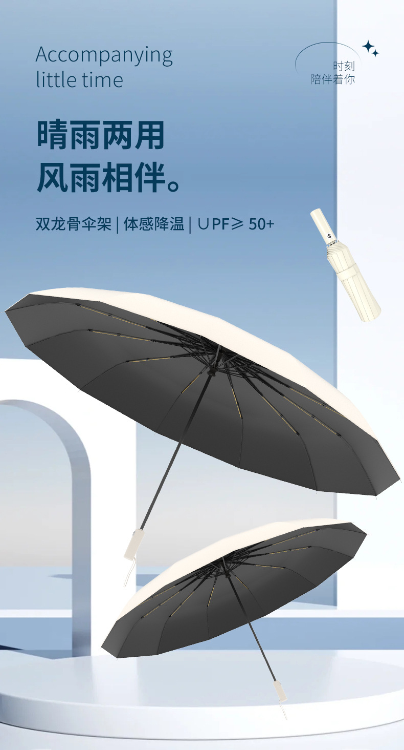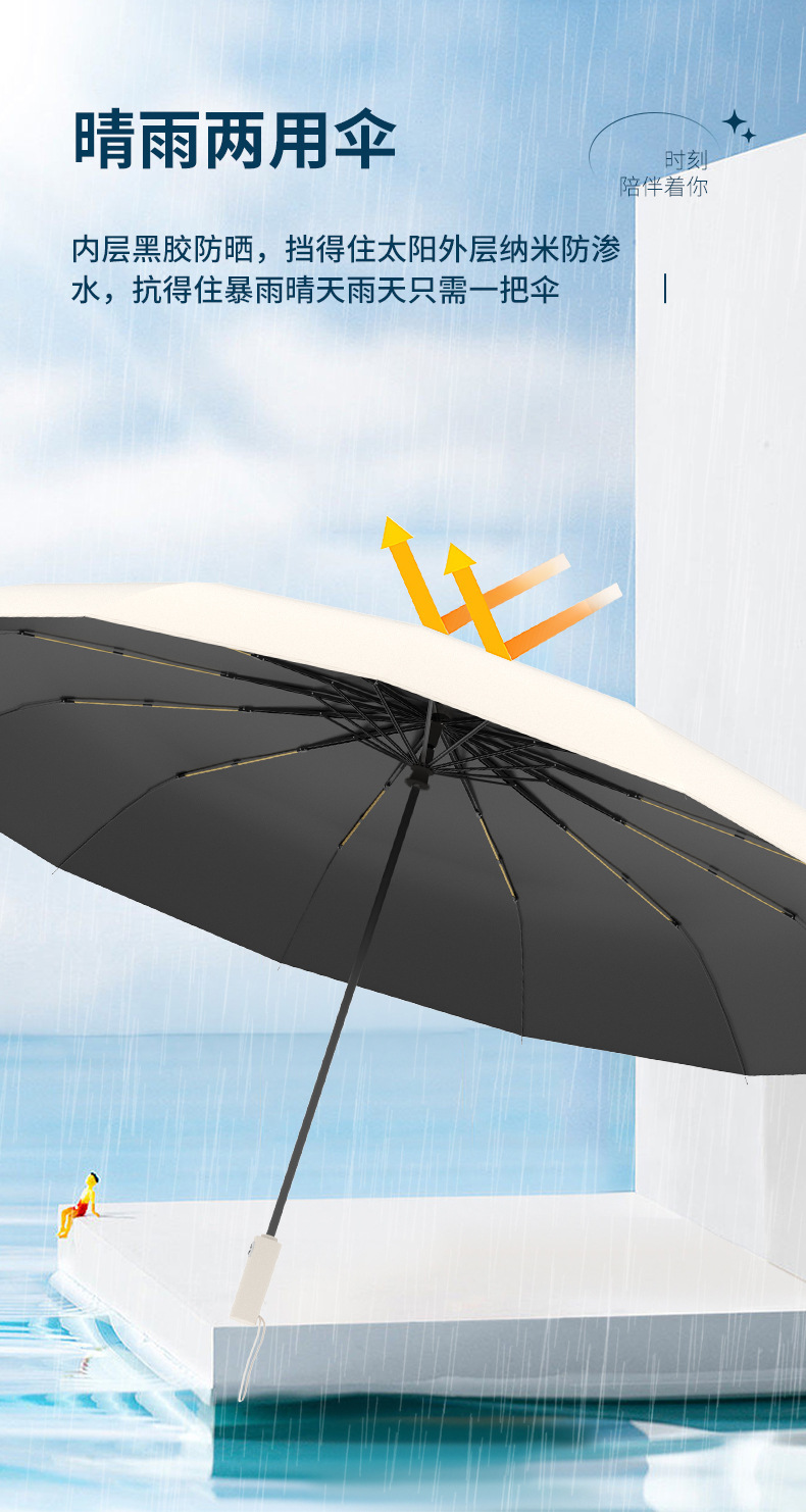 • 12 골 이중 용골 자동 우산 [블랙]]