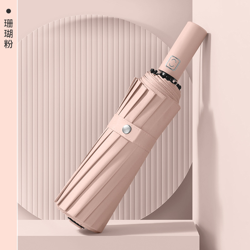 • 16 뼈 색 맞추기 손잡이 자동 우산 [산호 가루]]