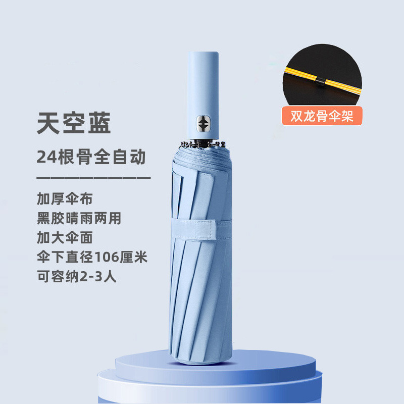 24 본 완전 자동 우산 대형 양지 바른 비 오는 이중 목적 접이식 우산 차양 태양 우산 제조 업체 도매 인쇄 광고스토어 가기