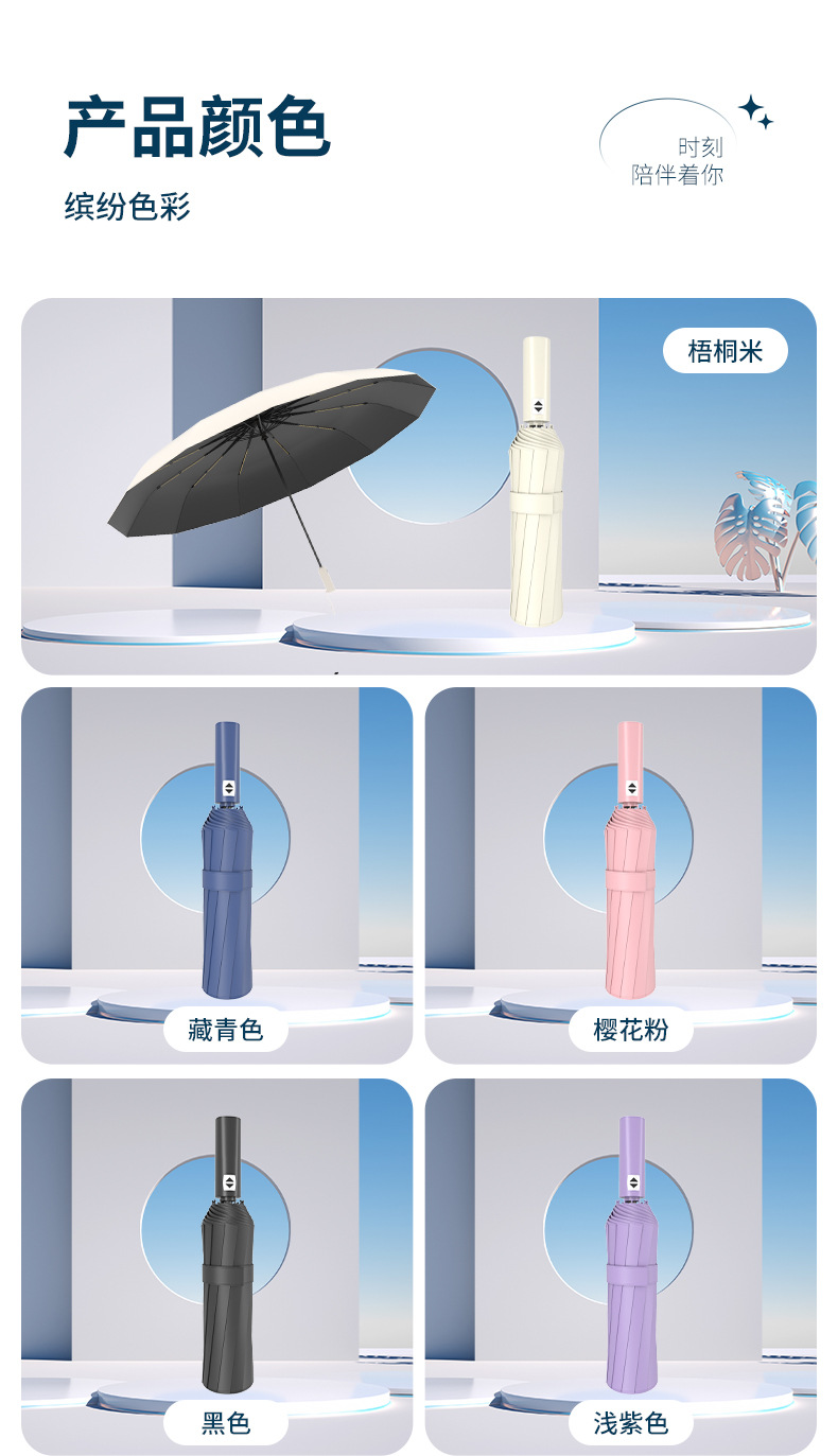 • 12 뼈 색 매칭 핸들 자동 우산 [천란]