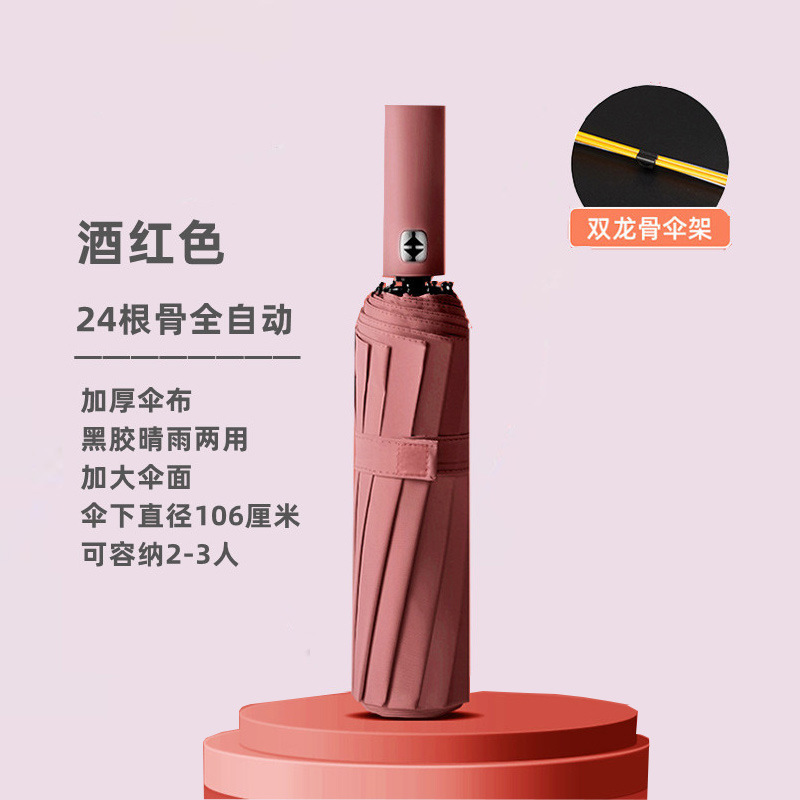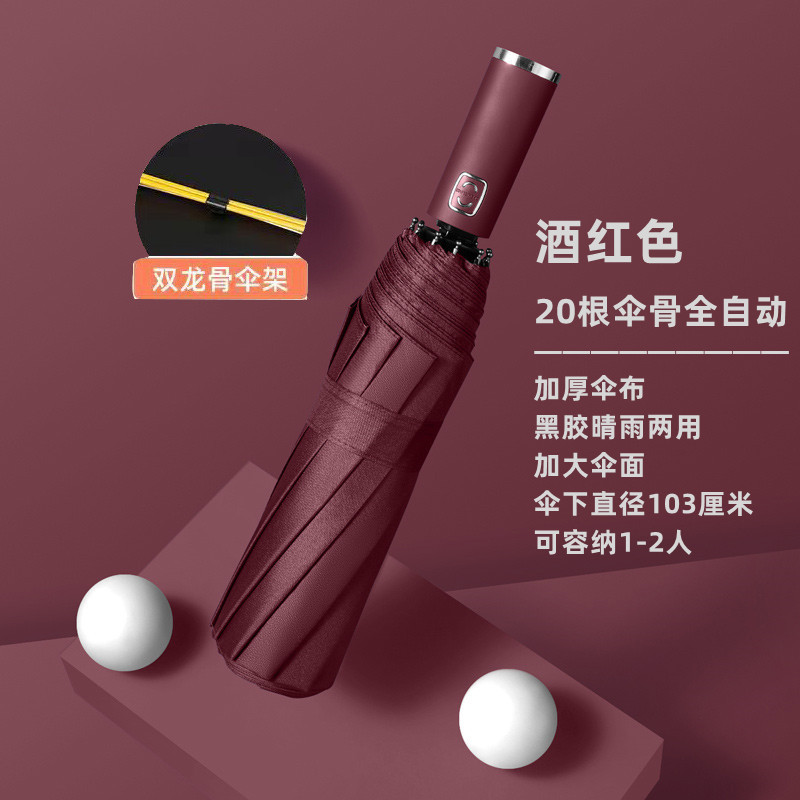 • 12 뼈 이중 용골 자동 우산 [버건디]