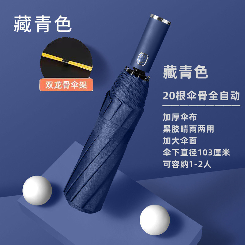 • 10 뼈 이중 용골 자동 우산 [다크 블루]