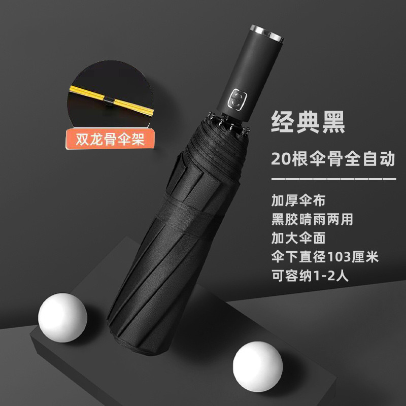 • 10 뼈 이중 용골 자동 우산 [블랙]]