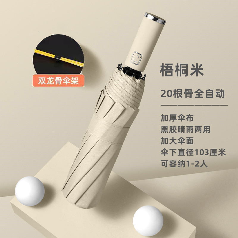 • 10 뼈 이중 용골 자동 우산 [라이트 브라운]