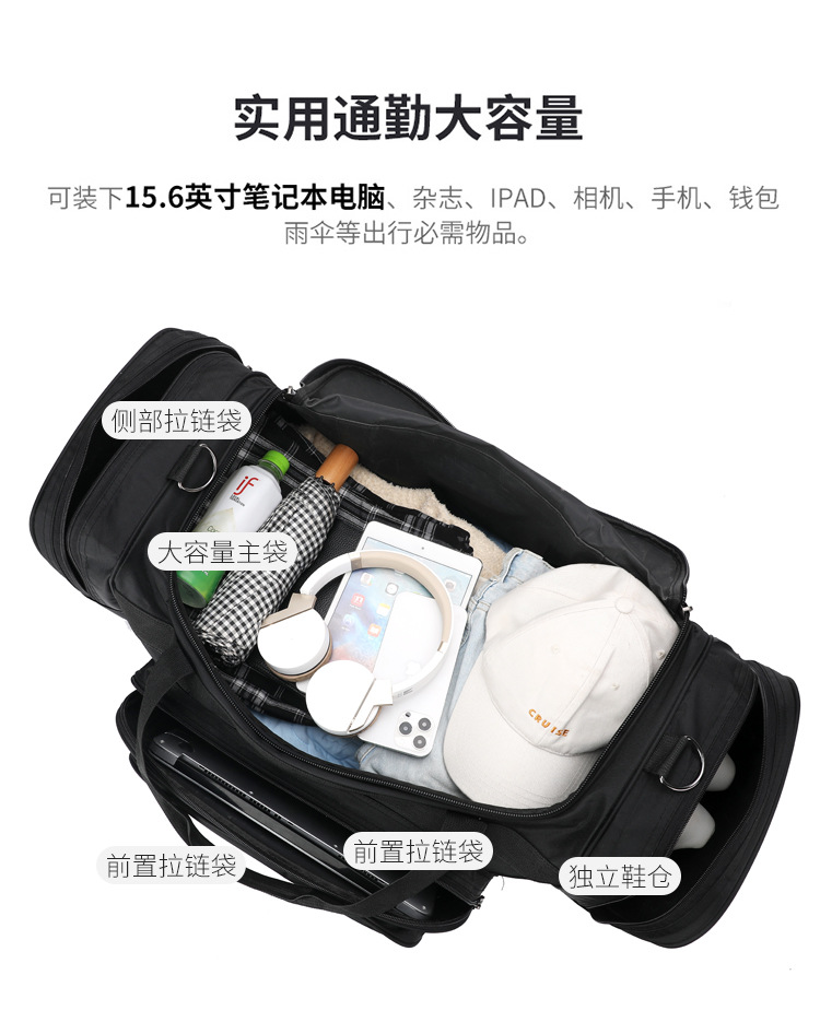 경량 심플 핸드백 남녀공용 접이식 대용량 싱글 숄더 이중 사용 여행 가방 다기능 접이식 수하물 가방