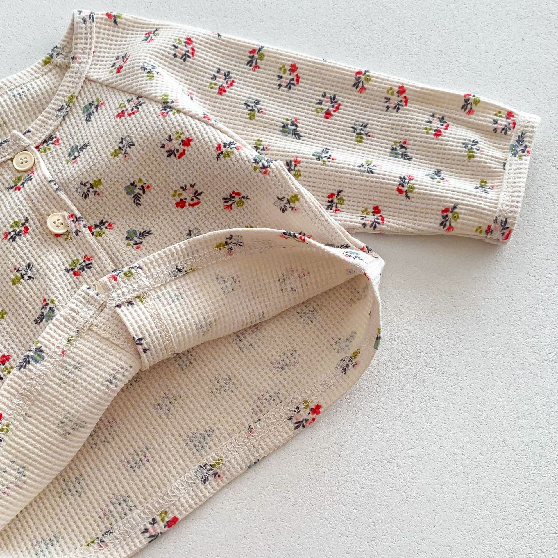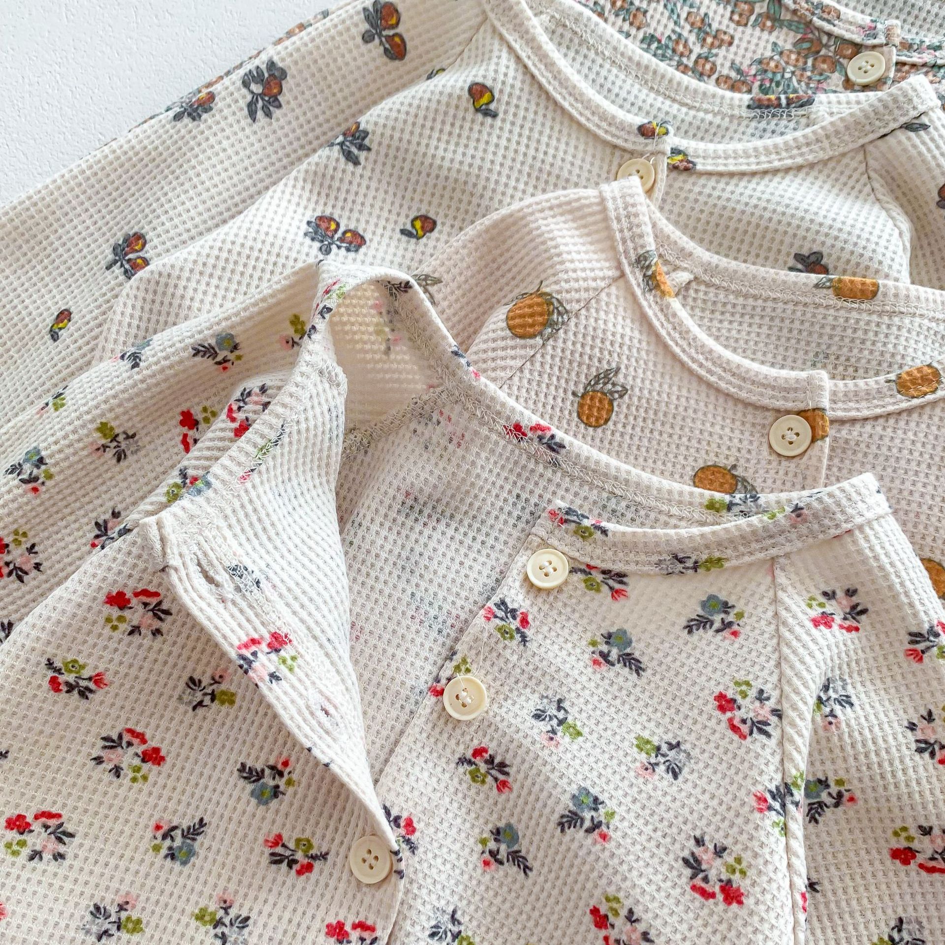 아기의 가을 옷 in 한국 아기의 가정 옷 인터넷 인기있는 긴 소매 와플 탑 바지 투피스 세트스토어 가기