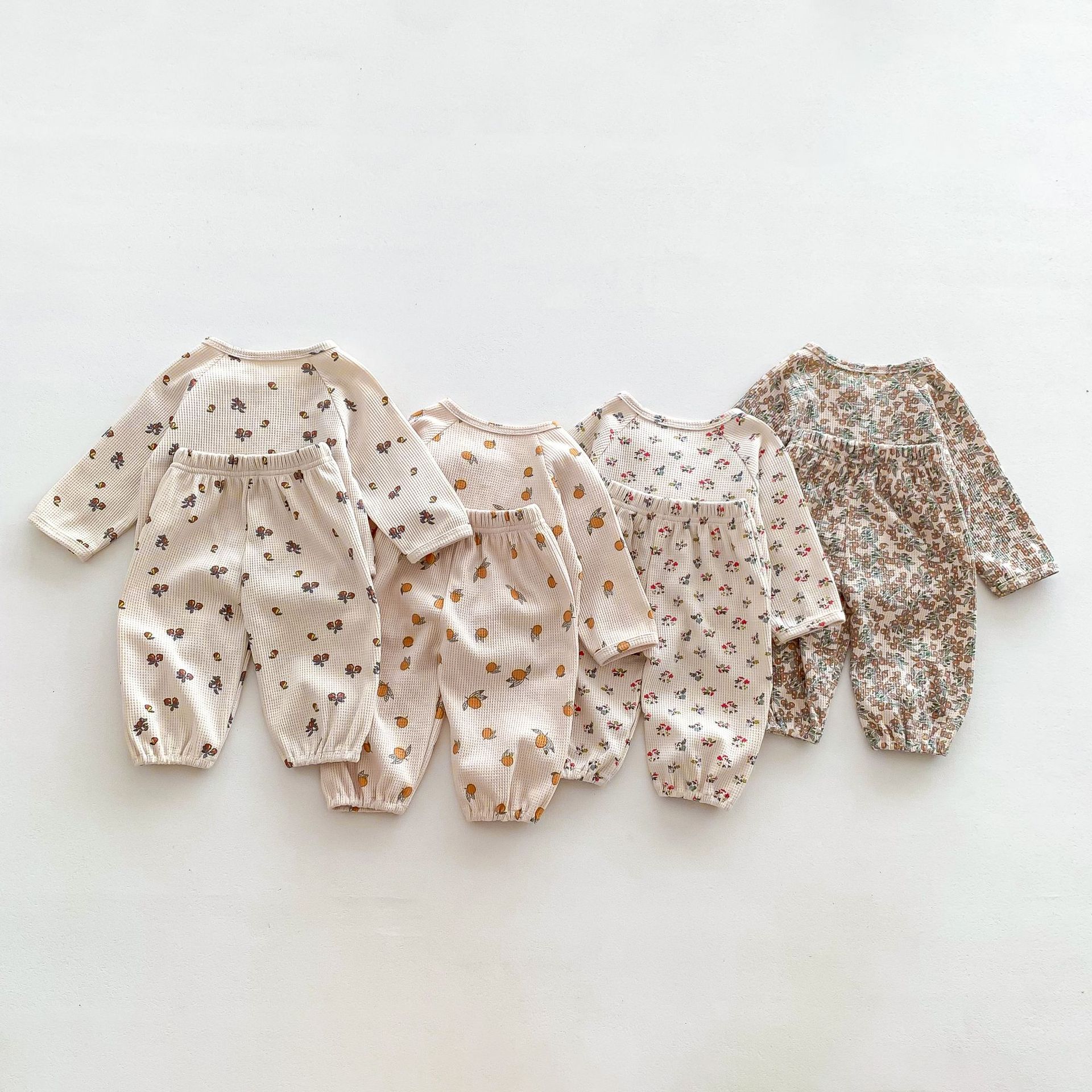 아기의 가을 옷 in 한국 아기의 가정 옷 인터넷 인기있는 긴 소매 와플 탑 바지 투피스 세트