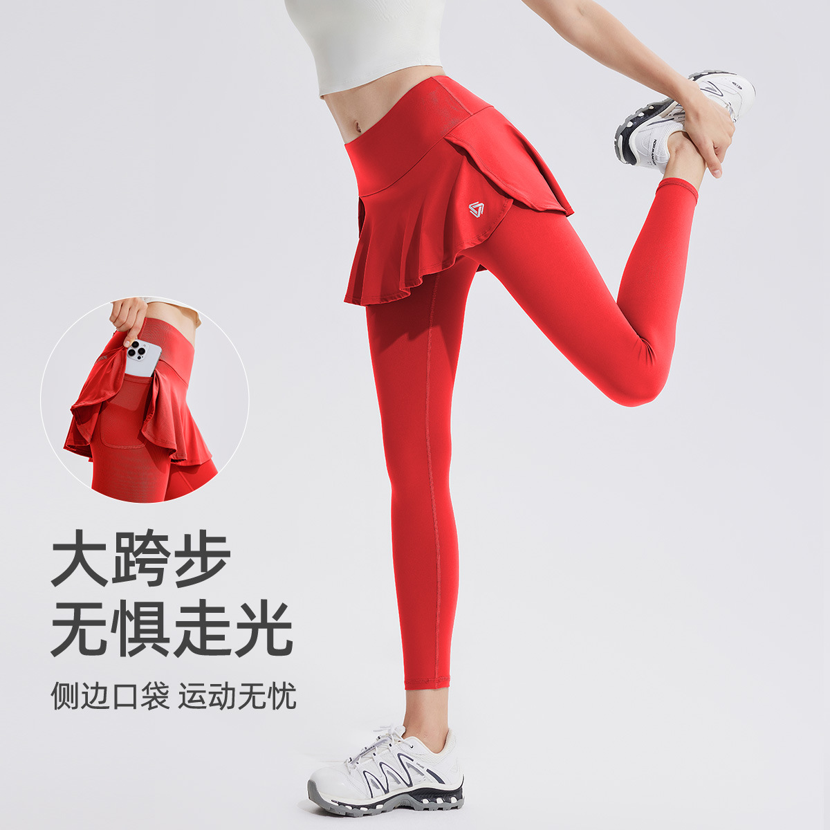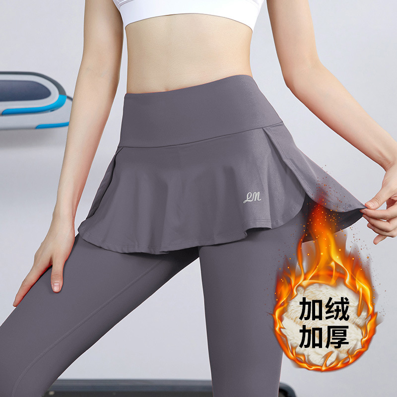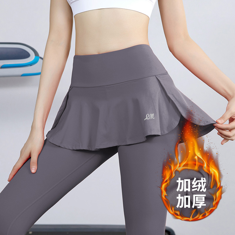 요가 바지 여자의 눈부심 방지 플러스 사이즈 하이 웨이스트 엉덩이 리프팅 꽉 야외 실행 피트니스 가짜 두 조각 테니스 스포츠 culottes