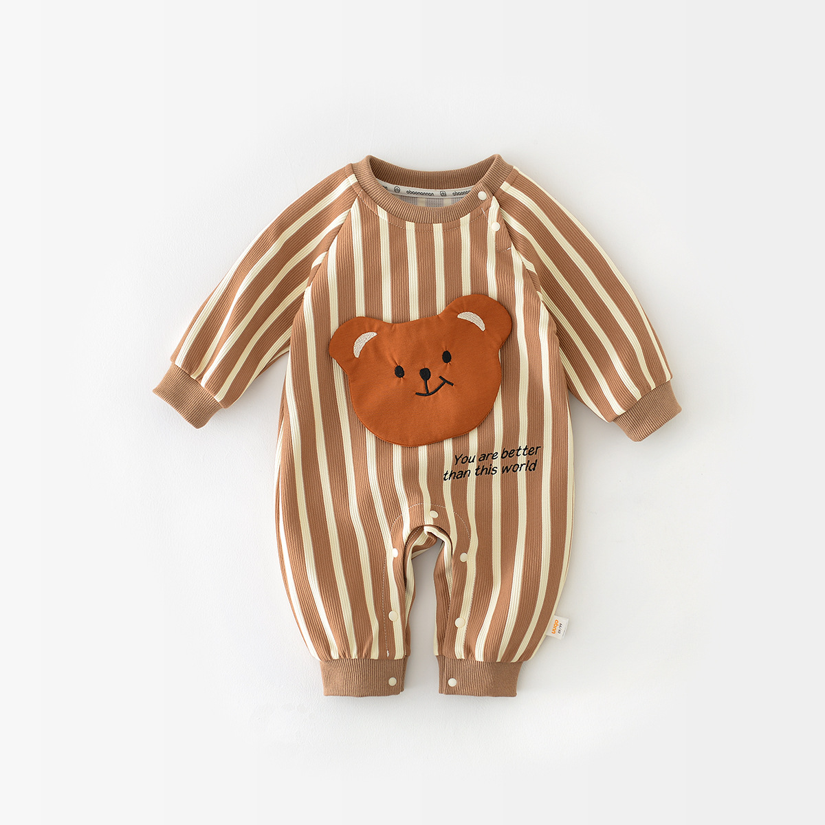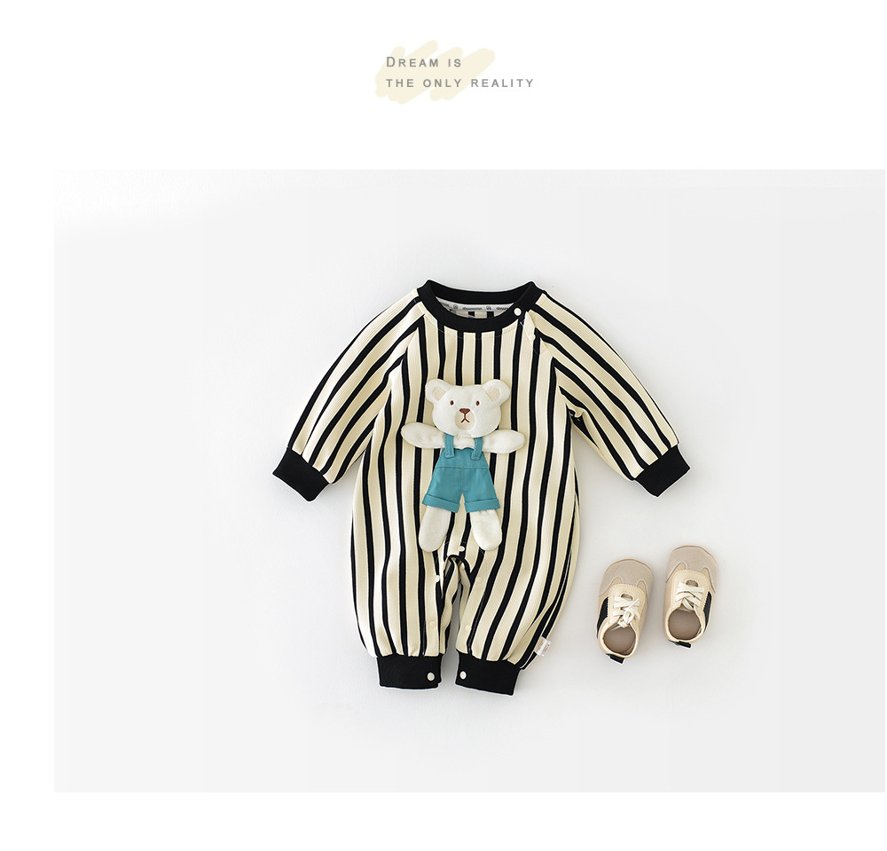 2025秋季新款儿童卡通连身衣 新生儿条纹脱卸领长袖爬服53566