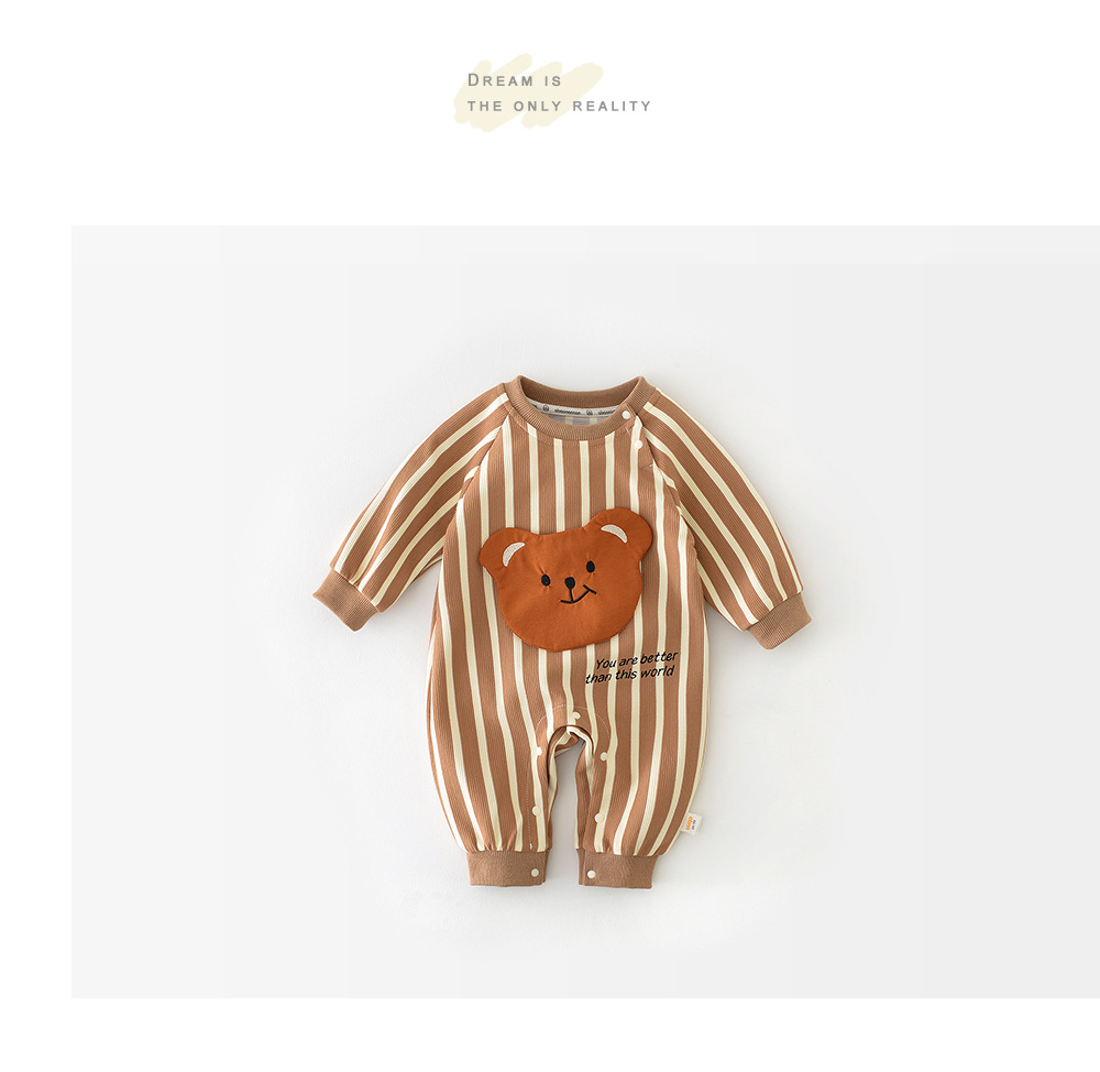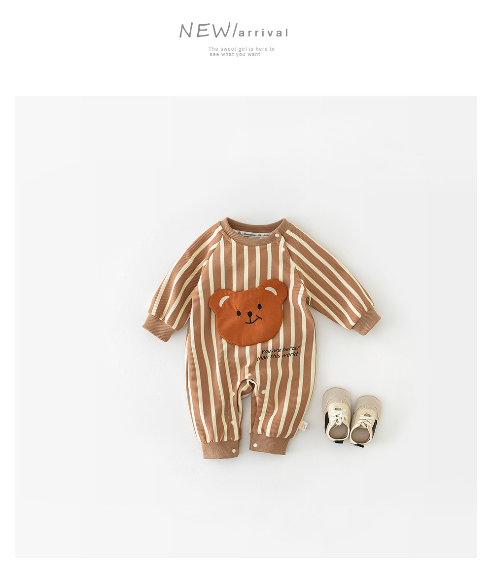 아기 봄옷 만화 곰돌이 롬퍼 신생아 원피스 봄 가을 아기 줄무늬 면 외출복스토어 가기