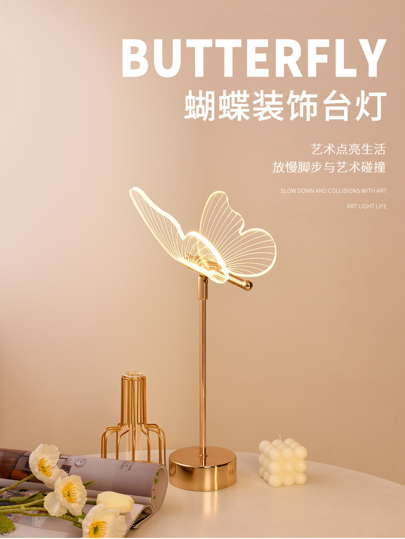 빛 럭셔리 간단한 아크릴 창조적 인 선물 분위기 램프 나비 테이블 램프 소녀의 침실 침대 옆 장식 야간 조명