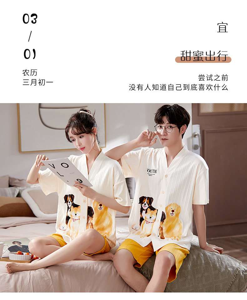 2025 여름 신상 커플 잠옷 여름 여성용 면 반팔 반바지 루즈핏 가디건 남성용 만화 홈웨어스토어 가기