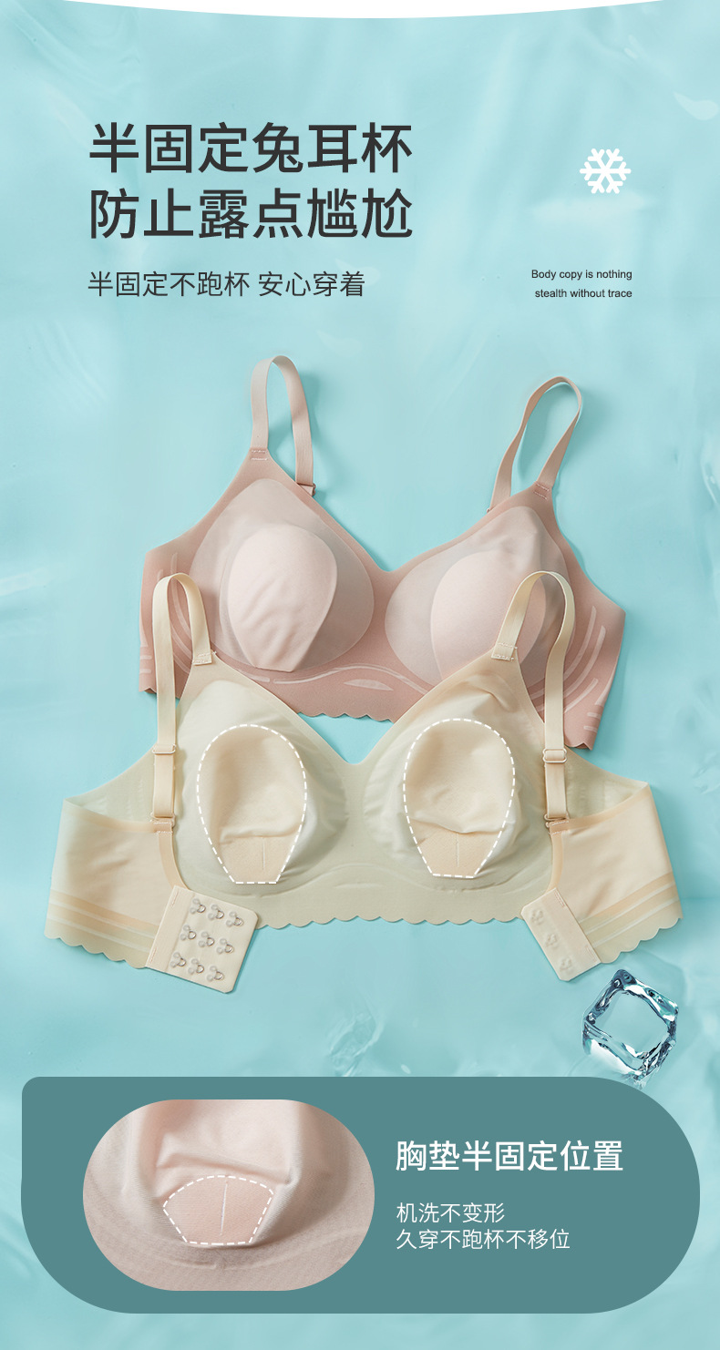 여름 쿨 소프트 지원 원활한 속옷 푸시 업 비 스틸 링 유방 처짐 방지 반 고정 토끼 귀 컵 브라